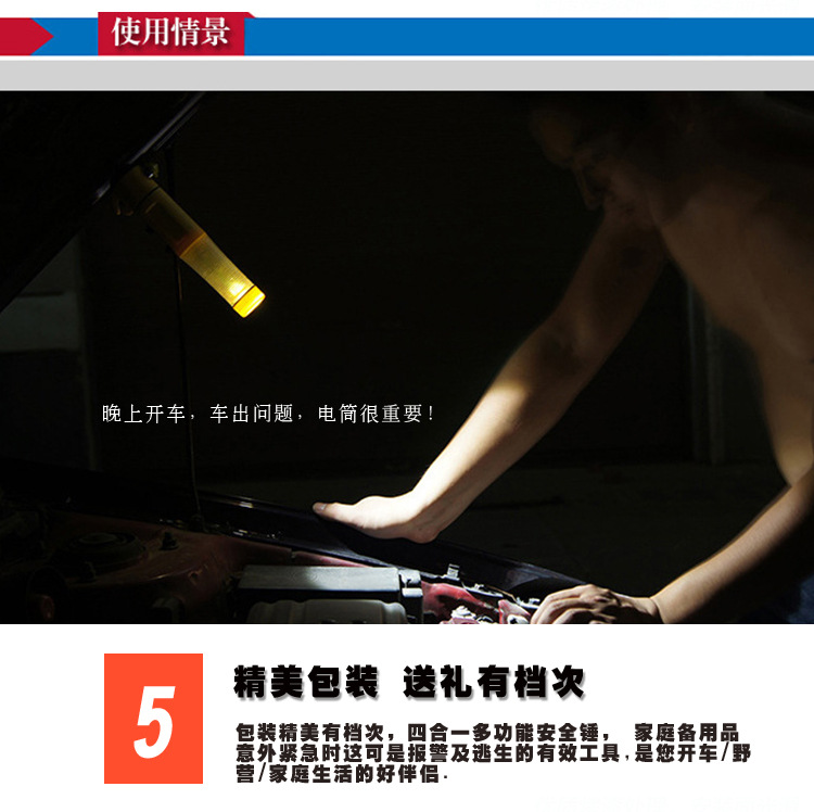 경고등 마그네틱 자동차 비상 공구와 손전등과 다기능 자동차 생활 망치 4 대 1 안전 망치