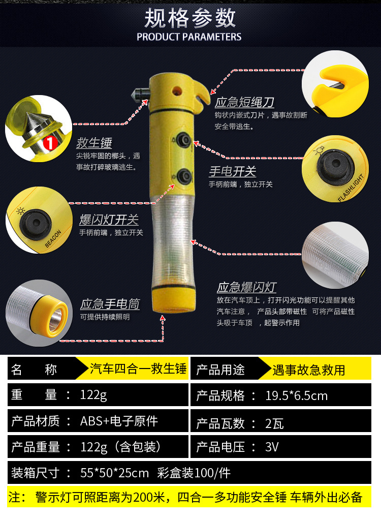 경고등 마그네틱 자동차 비상 공구와 손전등과 다기능 자동차 생활 망치 4 대 1 안전 망치스토어 가기