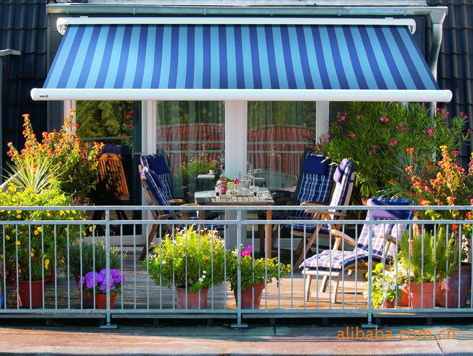 雨篷布面采用300克/平方±20克防水色织布,篷面撑布前后卷布管采用直径65MM铝合金管,(视情况需要后管还可以改用直径70MM铝管)其管径粗,刚性足,可承受5米宽度的布面拉力,超过五米需加装中支架和中支臂,才可以保证雨篷布面平整绷紧,不凹陷不积水。管径大,周长也相对较长,收放时便可以减少转动的次数,节省您宝贵的时间,铁臂表面白色喷塑,位置处于篷面以下十公分左右,不淋雨不易腐蚀。全密封齿轮箱采用铝合金外壳,内置黄油20克用于齿轮润滑,可长年保持轻松转动不生锈。