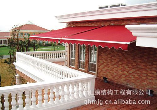 请买家注意区分不同厂家所选用的材料不同,价格有所区别。挑选雨篷时应该注意。在一套雨篷的所有组成部分当中,能够遮阳挡雨的部分是雨篷布面,所有部件都是为篷面能正常使用而服务,而对于能让雨篷布面正常工作起到/(?:)/关键作用的就是前后卷管,这里是关键,也是/(?:)/容易被人忽略的地方。尤其是卷布的后管,若管径过细便会被曲臂的弹力拉弯,其直接结果就是布面中间部分会松驰下垂,凹陷积水,轻则留下水印布面出坑变形,篷架倾斜,重则压坏曲臂或者直接将整套篷子压垮。甚至于因安装者不熟练将墙壁支架的间距留的过大,后管会在多种作用力之下因不堪重负,直接飞射出去,这种情况也是有的。所以,请各位买家注意区分不同厂家所用材料的区别。