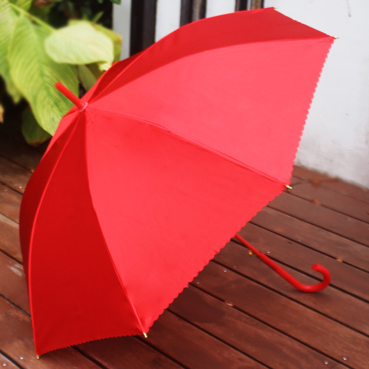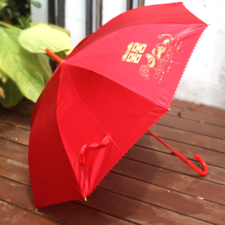 웨딩 용품 백 홈 우산 큰 빨강 웨딩 우산 커플 우산 긴 일자 손잡이 웨딩 우산 도매 인쇄 가능 광고 로고스토어 가기
