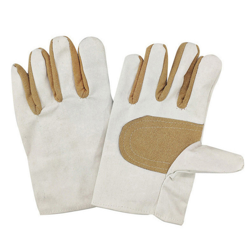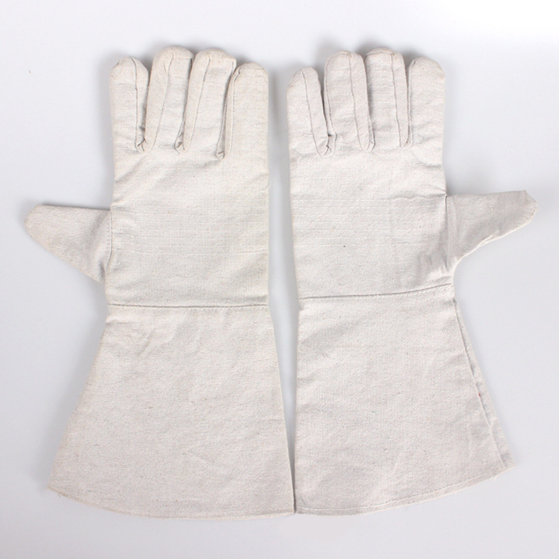 24 레인 캔버스 장갑 흰색 갑옷 긴 이중 전기 용접 장갑 내마모성 두꺼운면 용접기의 노동 보호 장갑