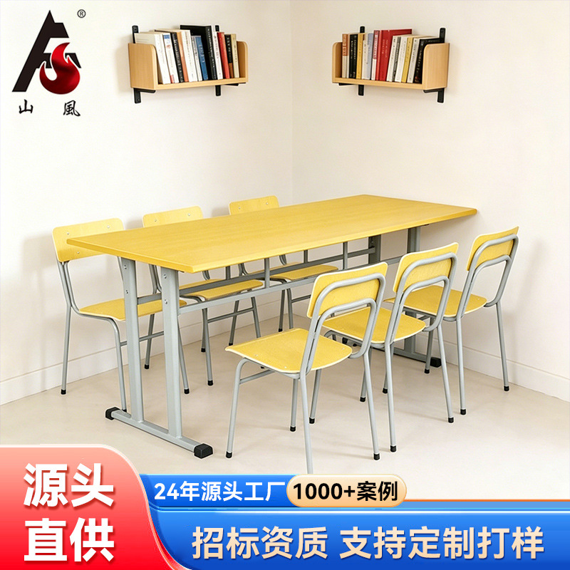 튜토리얼 교육 과정 학습 테이블 및 의자 회의 테이블 쓰기 책상 학생 책상 및 의자 이중 기둥 도서관 6 인용 독서 테이블스토어 가기