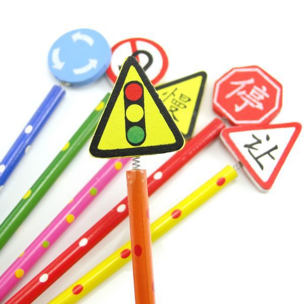 名称:可爱卡通 交通标志 木质铅笔 写字笔