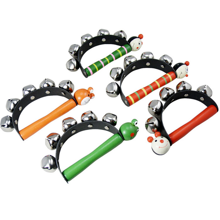 오르프 악기 만화 5 벨 가죽 손 벨 나무 유아 조기 교육 장난감 0-1 세 핸드 헬드 딸랑이
