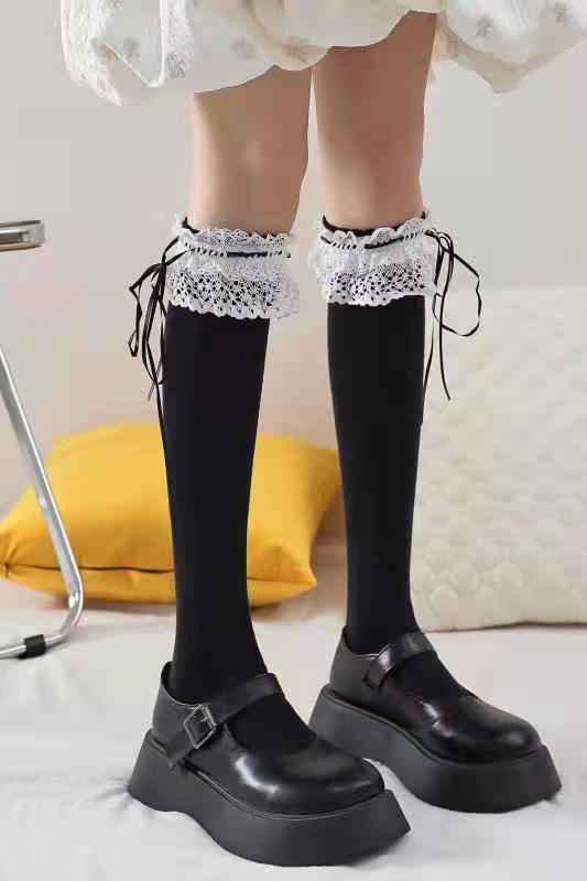 로리타 로리타 여자 레이스 무릎 스타킹 일본 대학 높은 튜브 다리 양말 제조 업체 도매