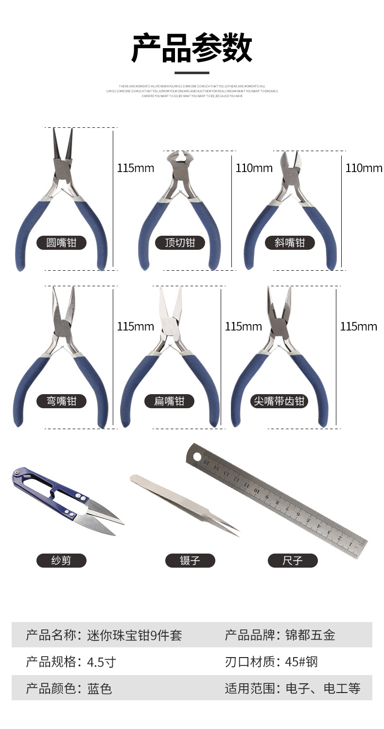 장자강 플라이어 쥬얼리 플라이어 9 피스 세트 세트 4.5 "쥬얼리 플라이어 스프링 시트 유럽 미니 플라이어스토어 가기
