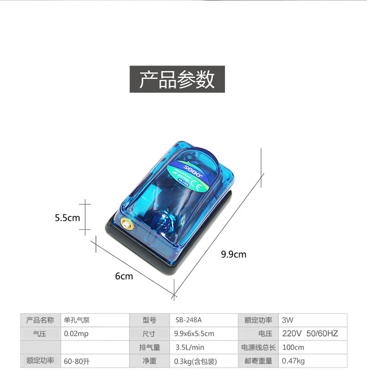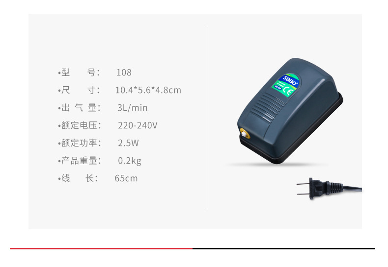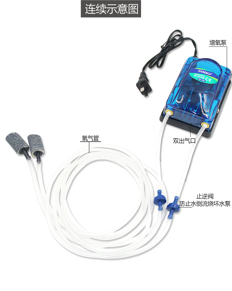 2、 安放气泵的位置必须高于水族箱的水位,防止水沿排气管流入机内。