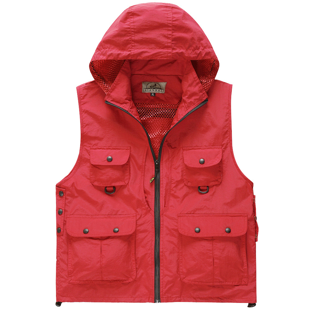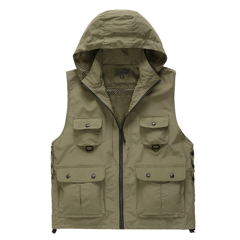 사진 조끼 여름과 가을 속건 방수 옥외 광고 낚시 멀티 포켓 조끼 남성 광고 조끼 후드
