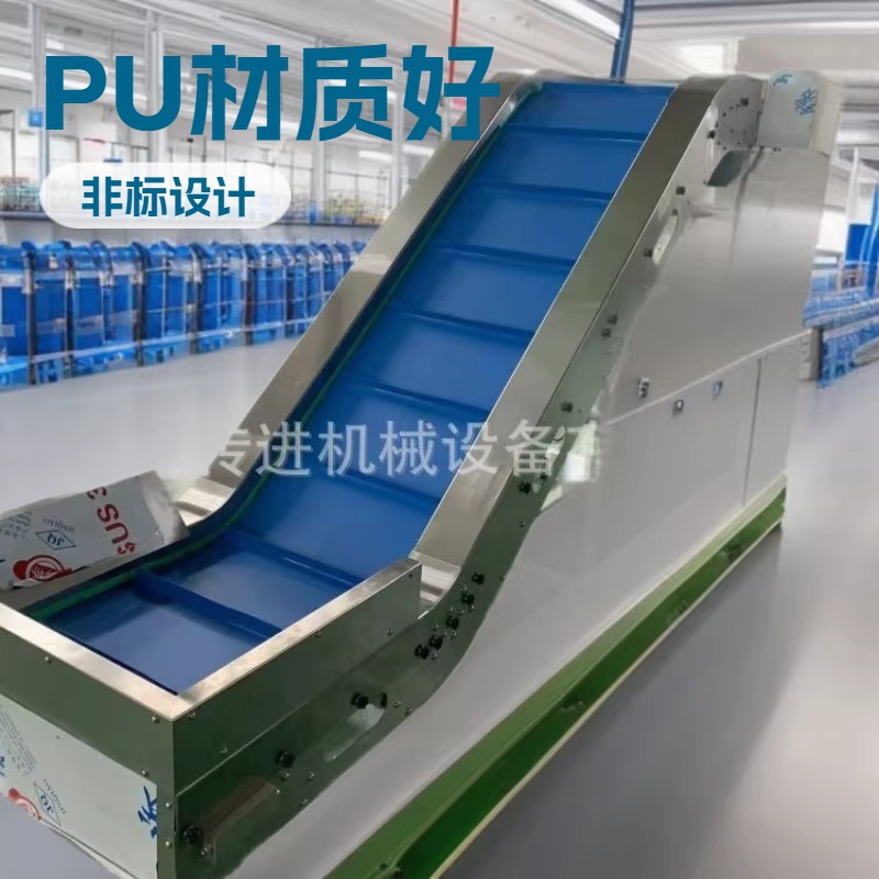 上海传进 皮带输送机也叫带式输送机或胶带输送机,是组成有节奏的流水作业线所不可缺少的经济型物流输送设备。皮带机按其输送能力可分为重型皮带机如矿用皮带输送机,轻型皮带机如用在电子塑料,食品轻工,化工医药等行业。皮带输送机具有输送能力强,输送距离远,结构简单易于维护,能方便地实行程序化控制和自动化操作。运用输送带的连续或间歇运动来输送100KG以下的物品或粉状、颗状物品,其运行高速、平稳,噪音低,并可以上下坡传送