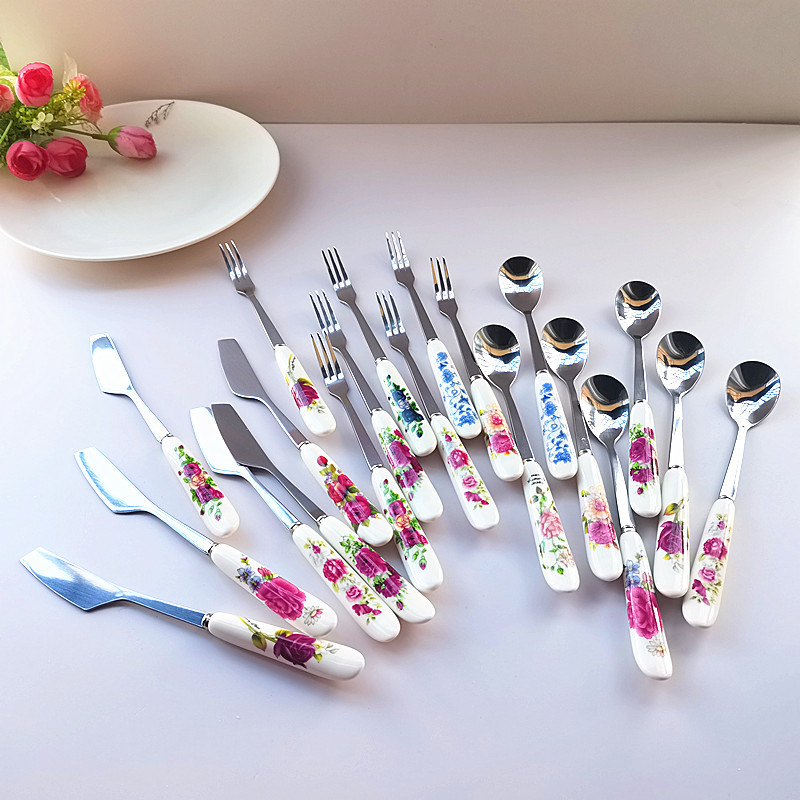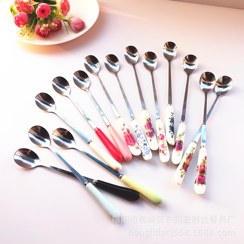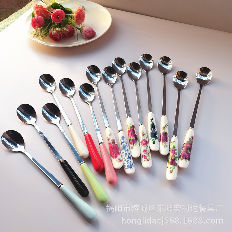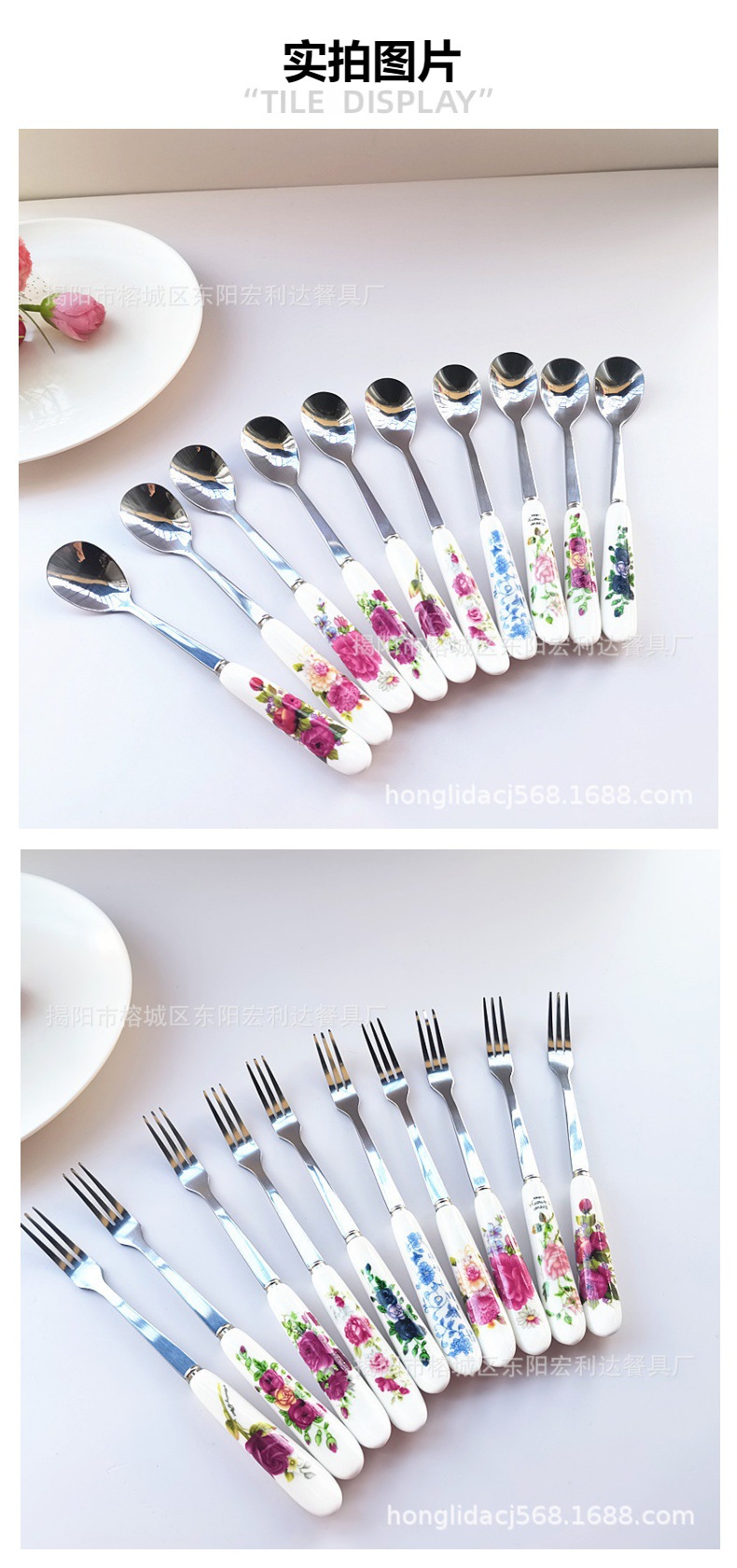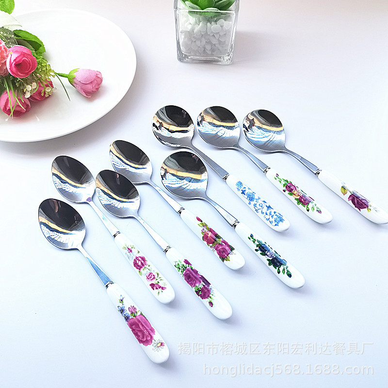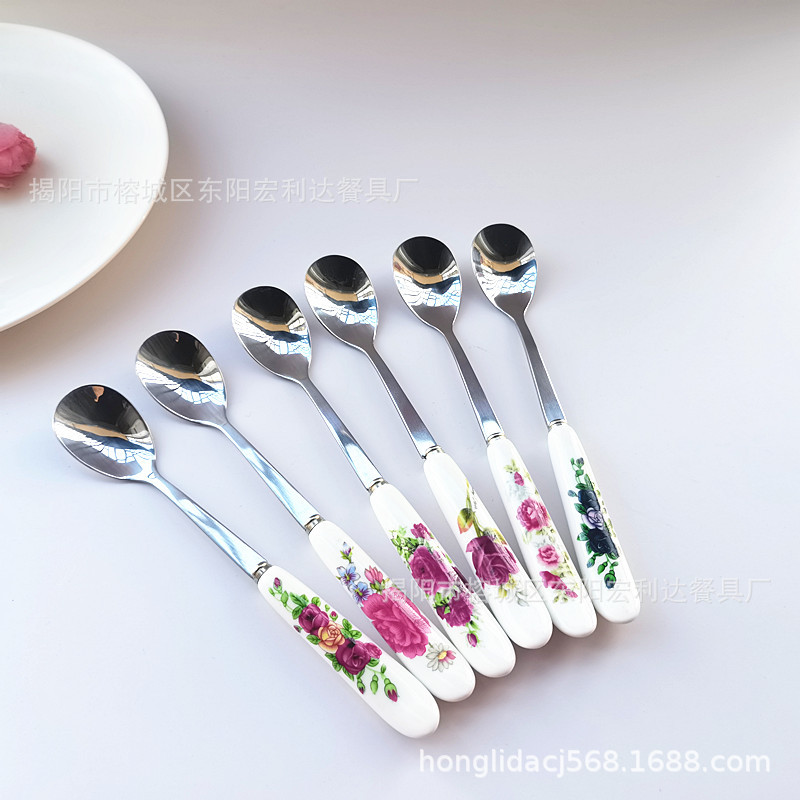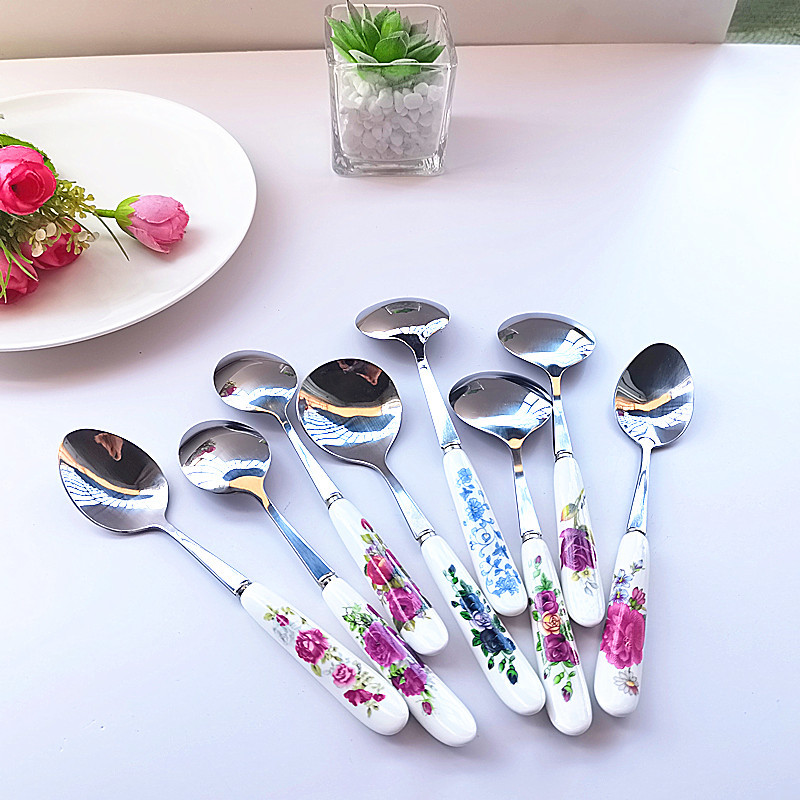 한국 스타일 꽃무늬 커피 스푼 머그컵 요거트 스터핑 스푼 아이스크림 케이크 디저트 세라믹 손잡이 스푼