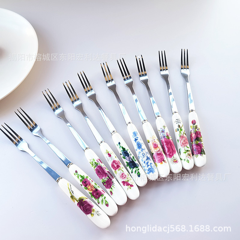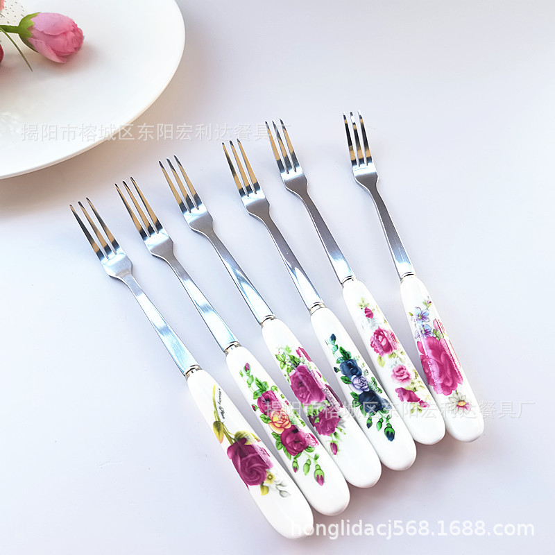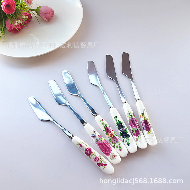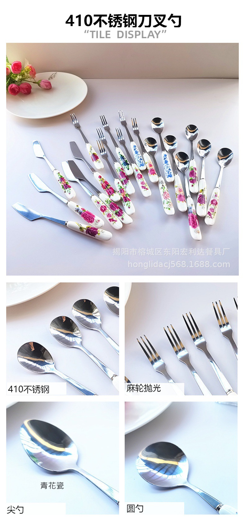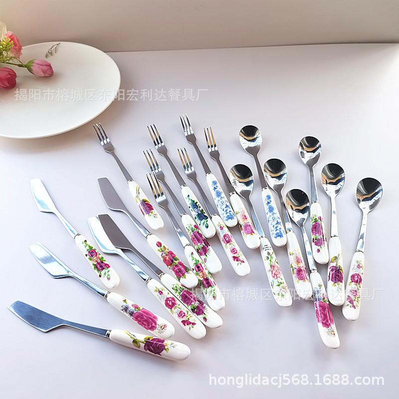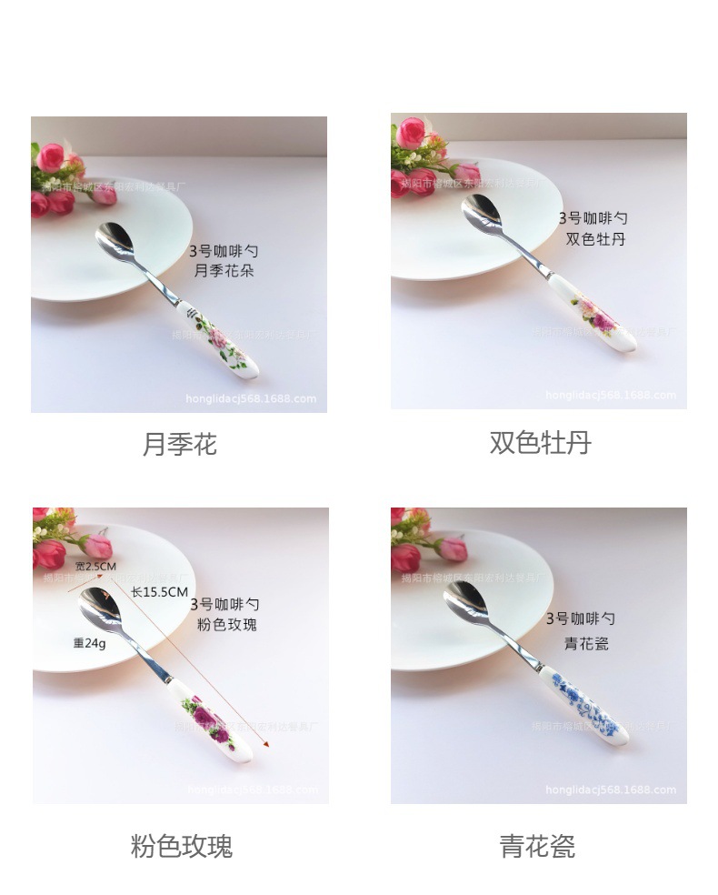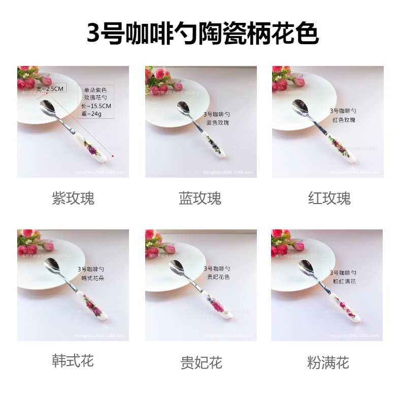 한국 스타일 꽃무늬 커피 스푼 머그컵 요거트 스터핑 스푼 아이스크림 케이크 디저트 세라믹 손잡이 스푼