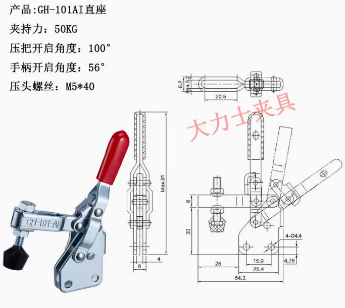 허큘리스 클램프 GH-101-A-WDC 수직 클램프 사이드 시트 스테인레스 스틸 MC04-1L 빠른 클램프