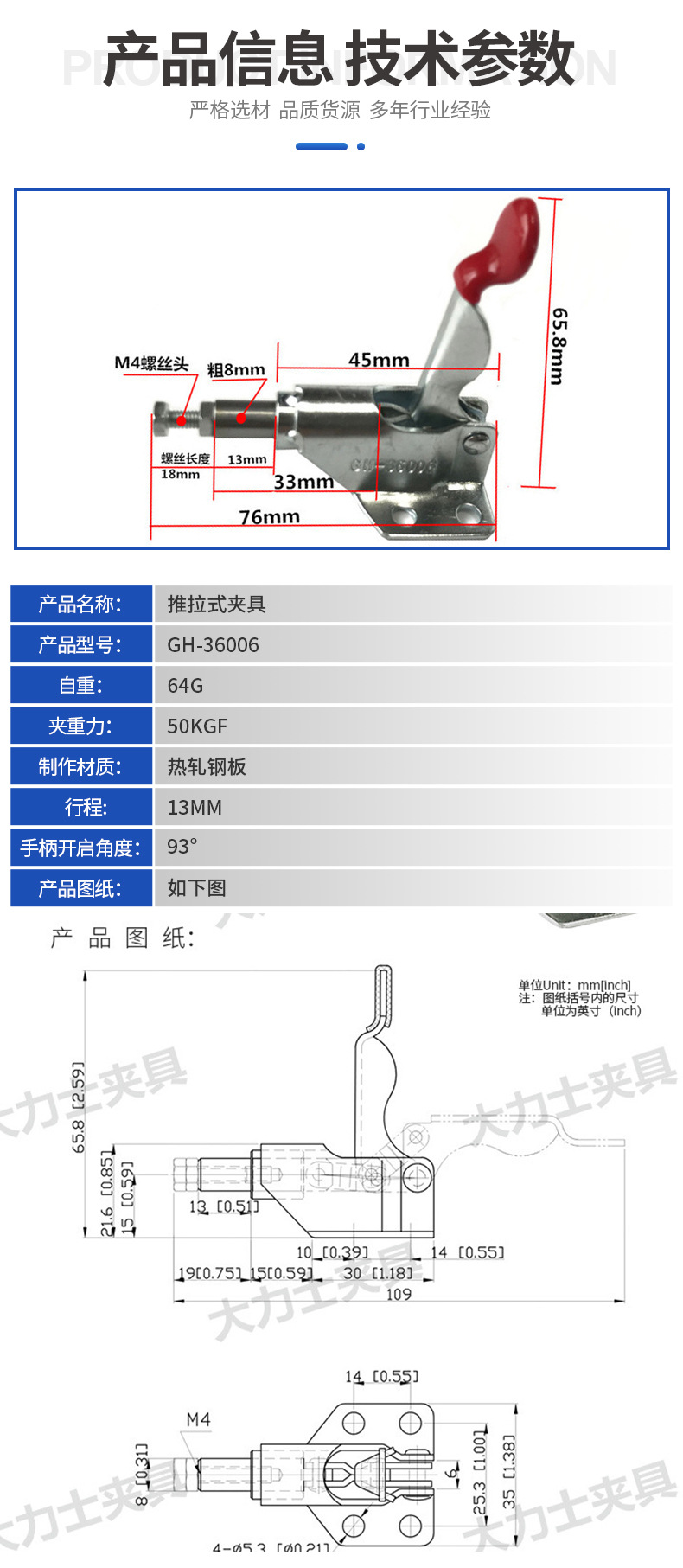 허큘리스 고정 장치 GH-36006-WDC 푸시 풀 고정 장치 MC07-1 툴링 클램프 용접 고정 퀵 클램프스토어 가기
