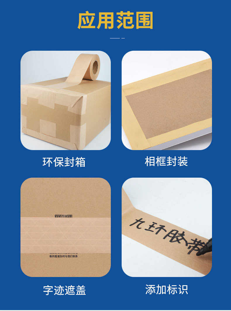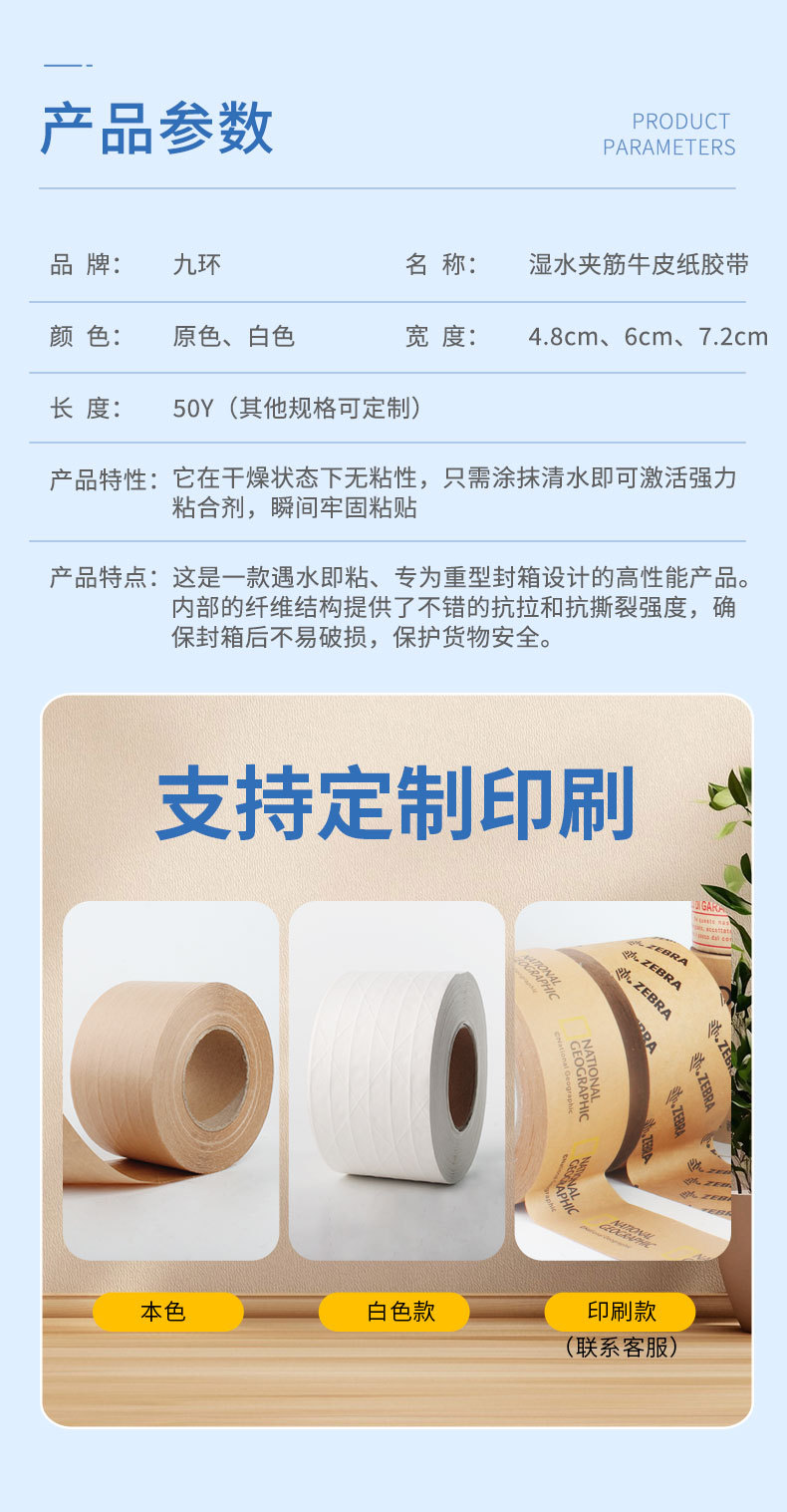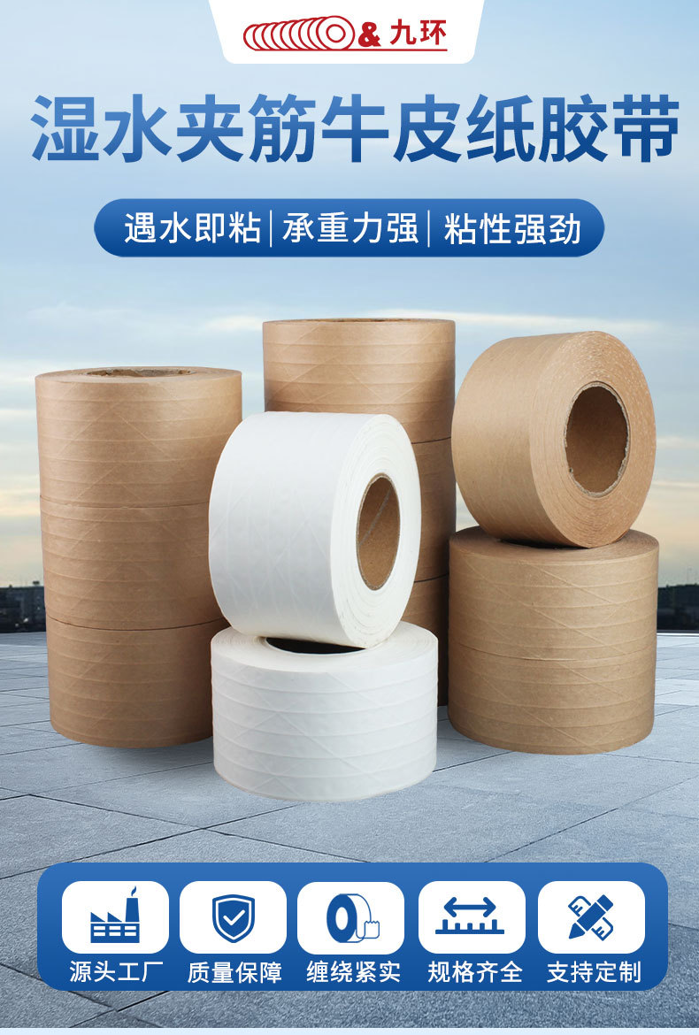 Jiuhuan 습수 적층 크래프트 종이 테이프 수성 종이 테이프 유선 강화 크래프트 종이 인쇄 밀봉 테이프