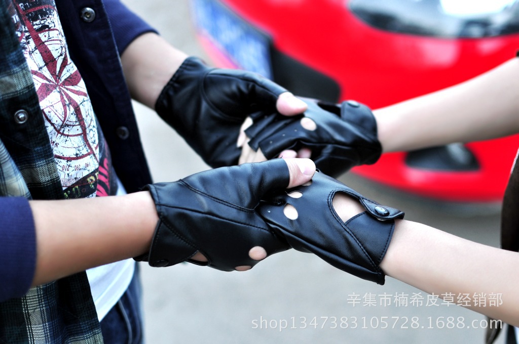 장갑 손가락 중공 패션 오토바이 반 손가락 여자 남자 커플 유럽과 미국 반 손가락 장갑스토어 가기