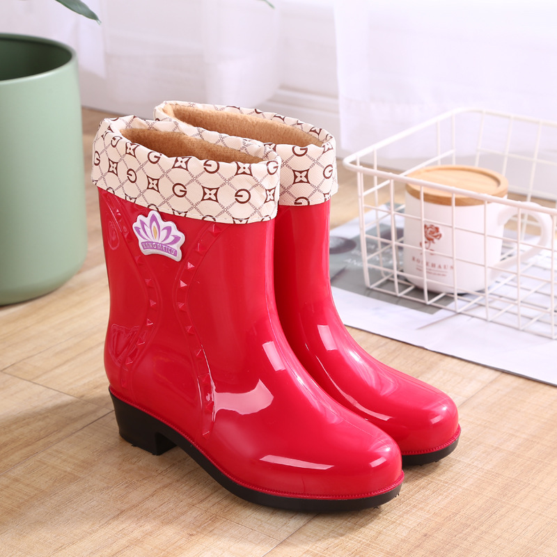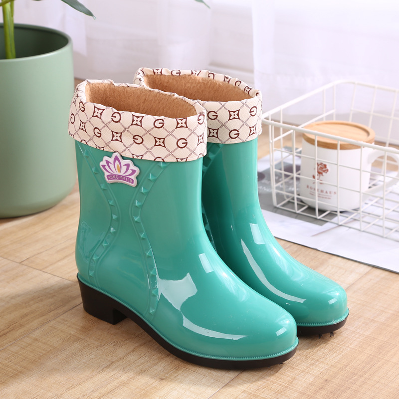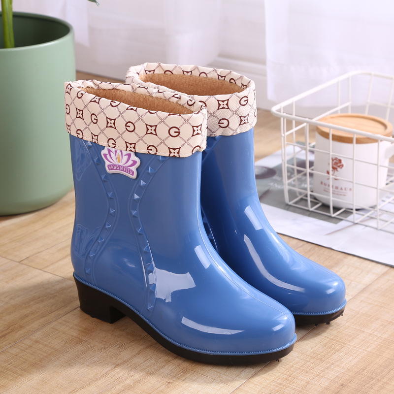 패션 여성용 짧은 레인 슈즈 미끄럼 방지 내마모성 장화 사계절 여성용 로우 배럴 우아한 모든 매치 코튼 워터 슈즈 1668스토어 가기