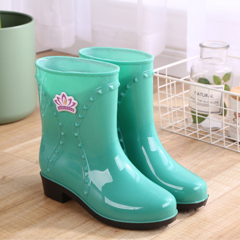 패션 여성용 짧은 레인 슈즈 미끄럼 방지 내마모성 장화 사계절 여성용 로우 배럴 우아한 모든 매치 코튼 워터 슈즈 1668