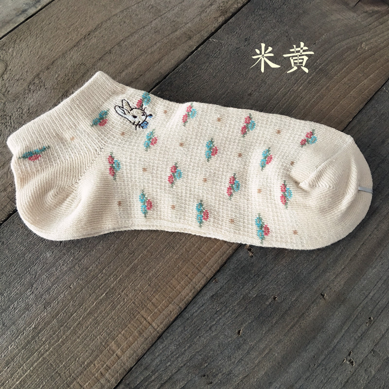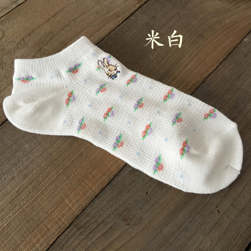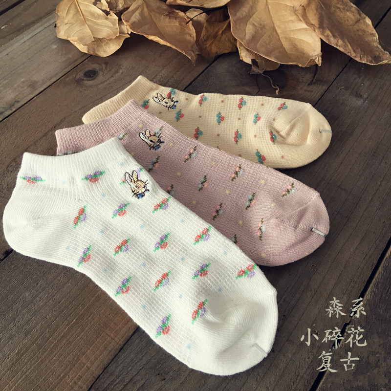 일본의 새로운 삐피 토끼 모리 작은 꽃 면 여성 양말 메쉬 얕은 입 통기성 보트 양말 여성용 면 양말스토어 가기