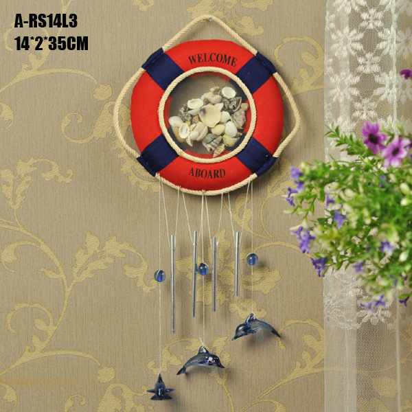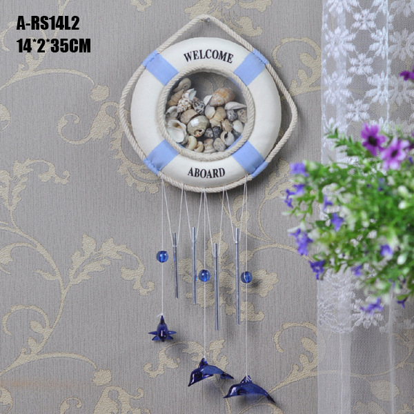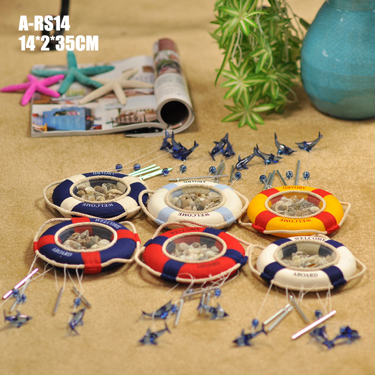 地中海风格挂饰,手工缝制的救生圈造型和天然贝壳的完美结合,是一种天然的纯净感觉。