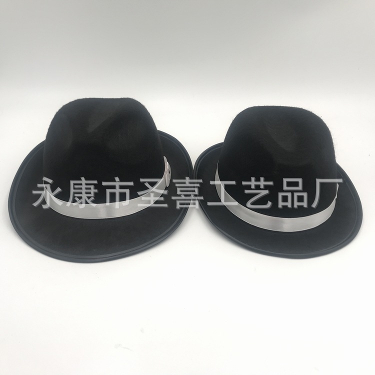 礼帽尺寸: 长34宽30高12CM 成人尺寸,头围周长59CM 包装尺寸60*34*85CM 120PCS/件 毛11净10KG