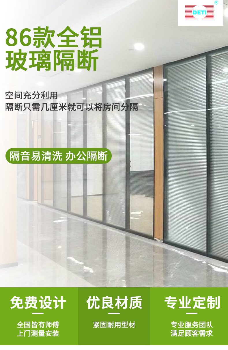 86 강화유리 칸막이, 사무실 유리 칸막이, 전체 알루미늄 유리 칸막이벽, 심플한 단일 유리 블라인드 칸막이