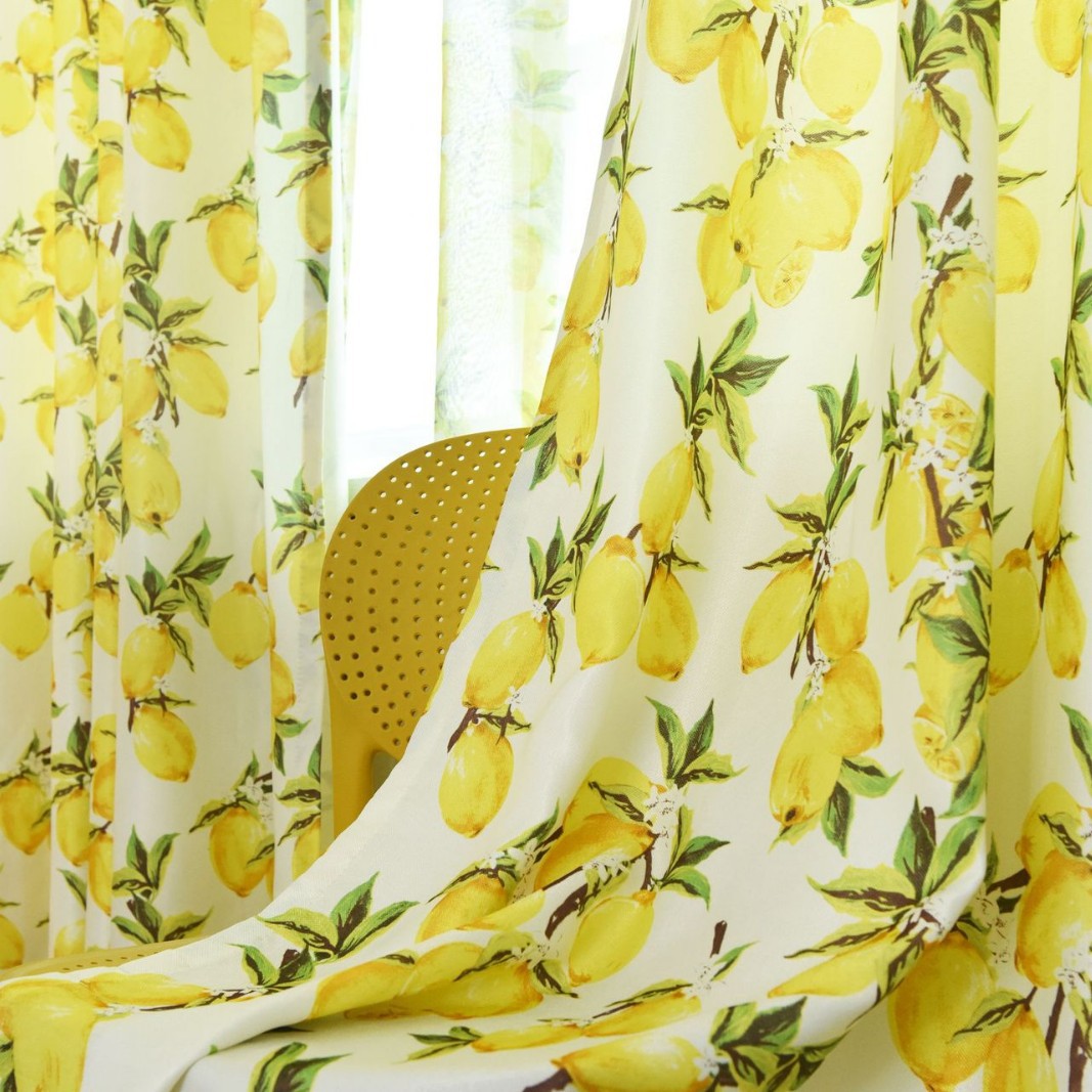 북유럽 스타일의 산뜻한 전원풍 커튼, 거실, 침실, 서재용 완제품 창문 커튼, 레몬 커튼