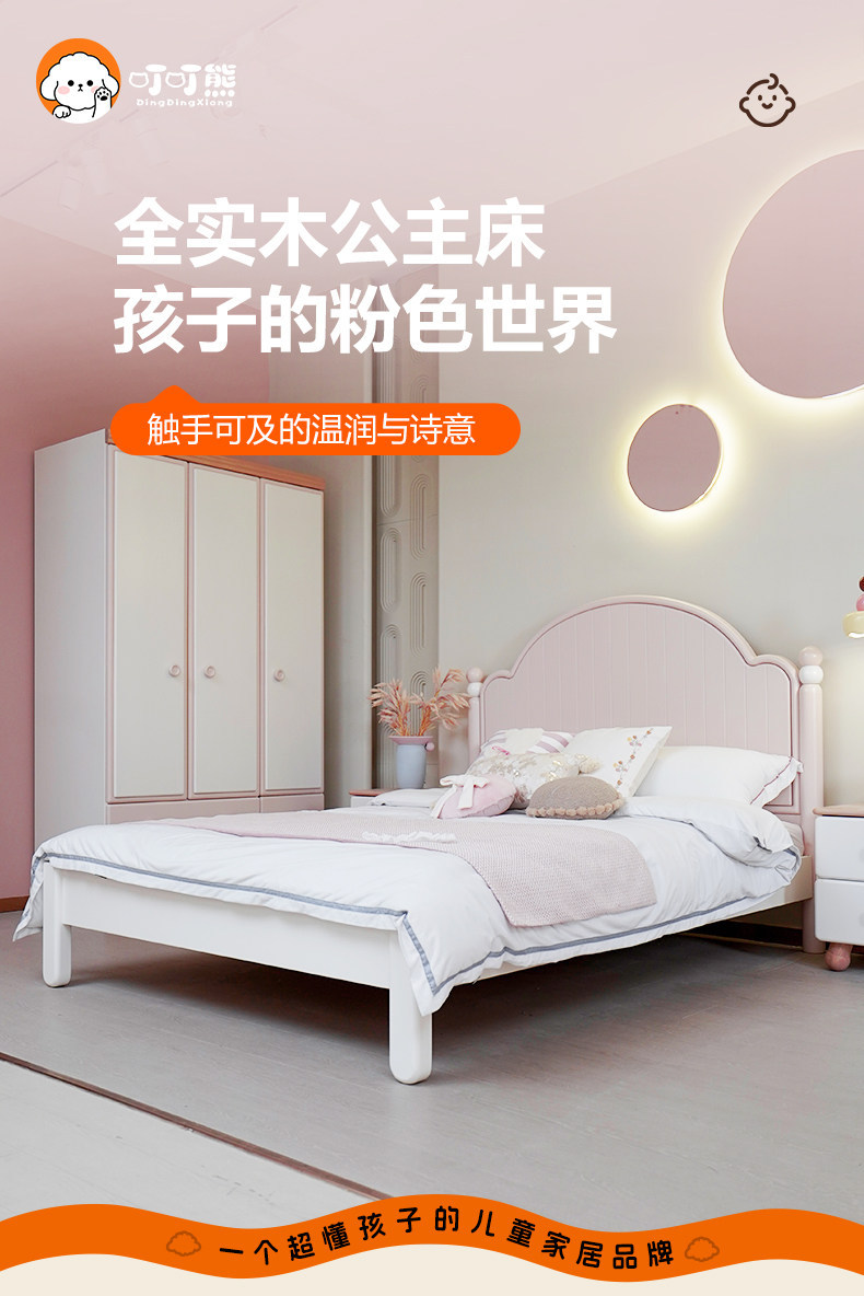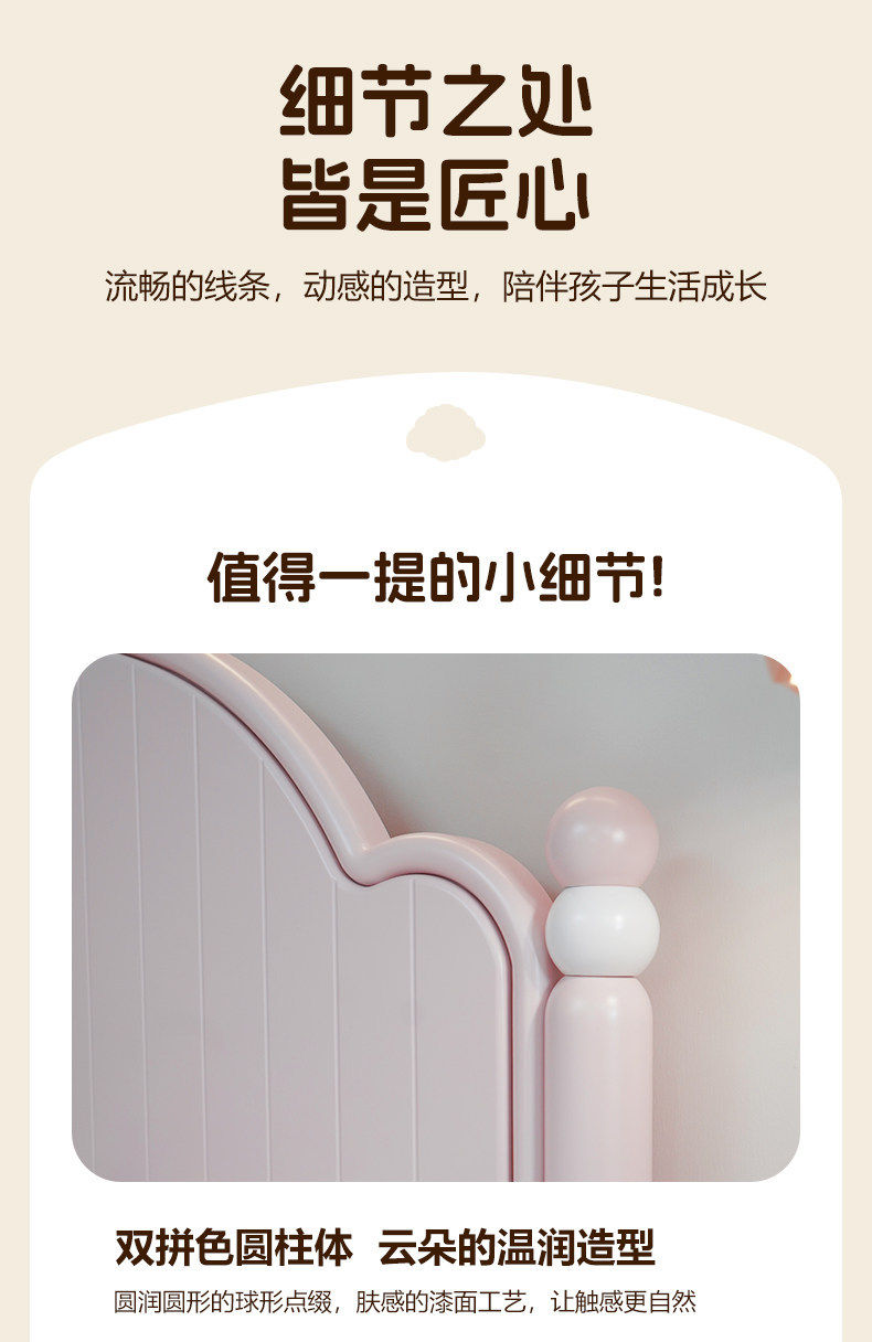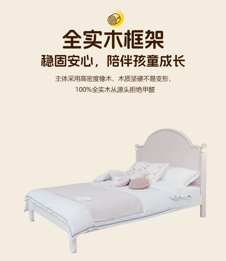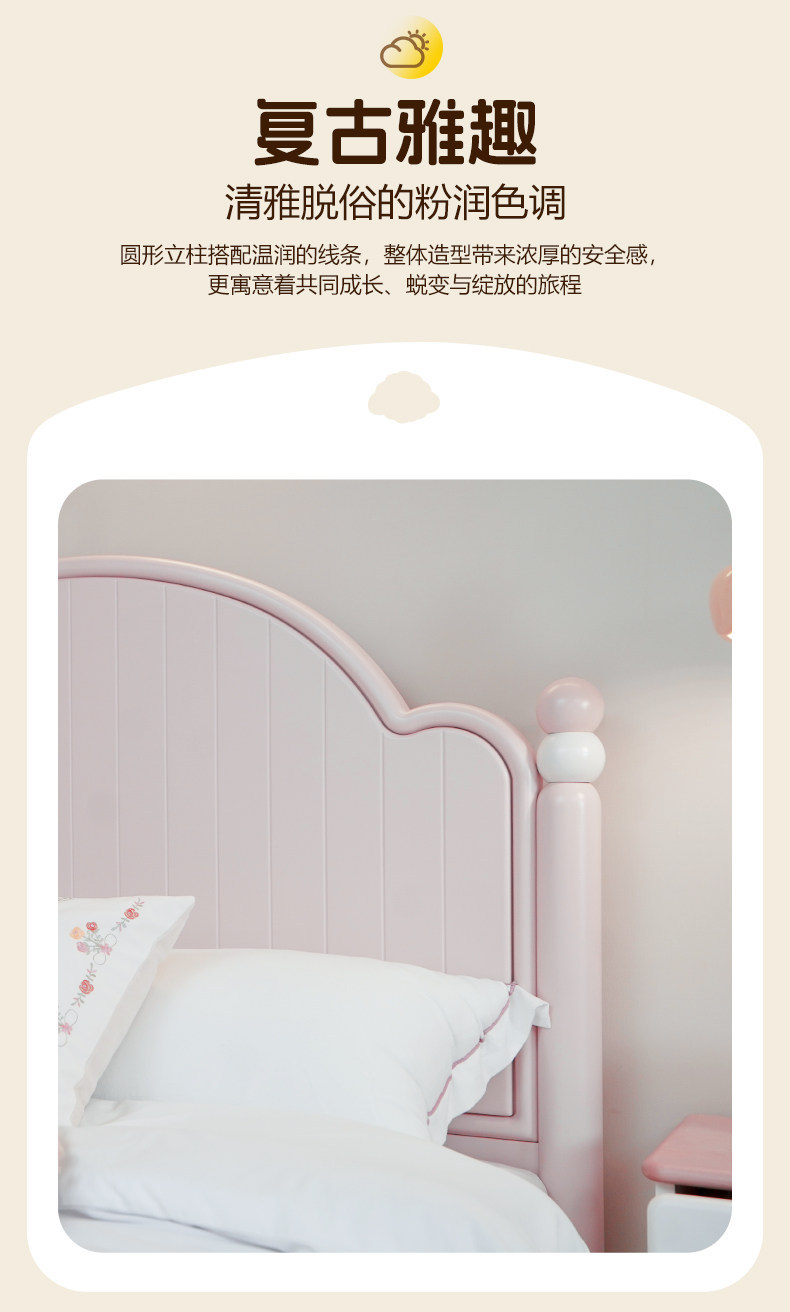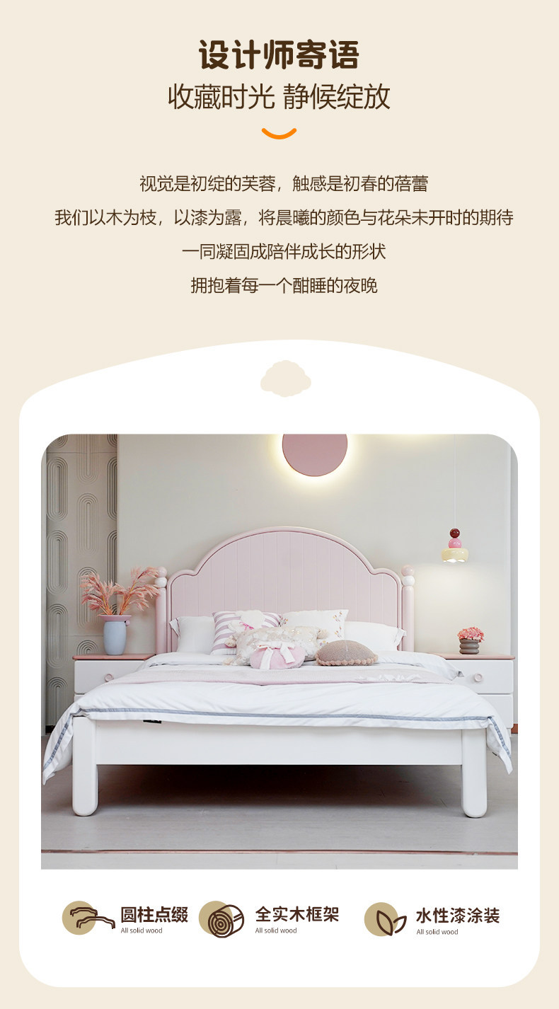 무웨 어린이 침대 여아용 원목 핑크 공주 침대 모던 소형 가정용 침실 싱글 침대 1.5m