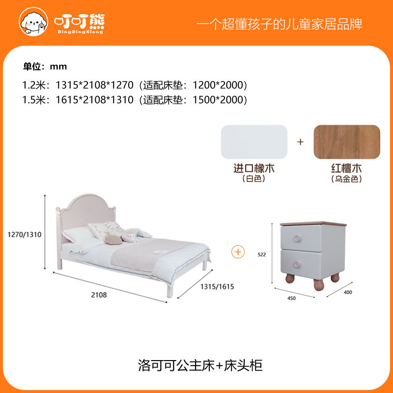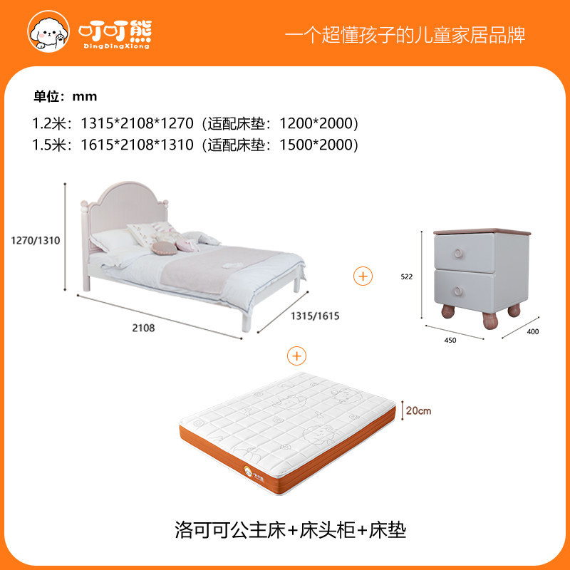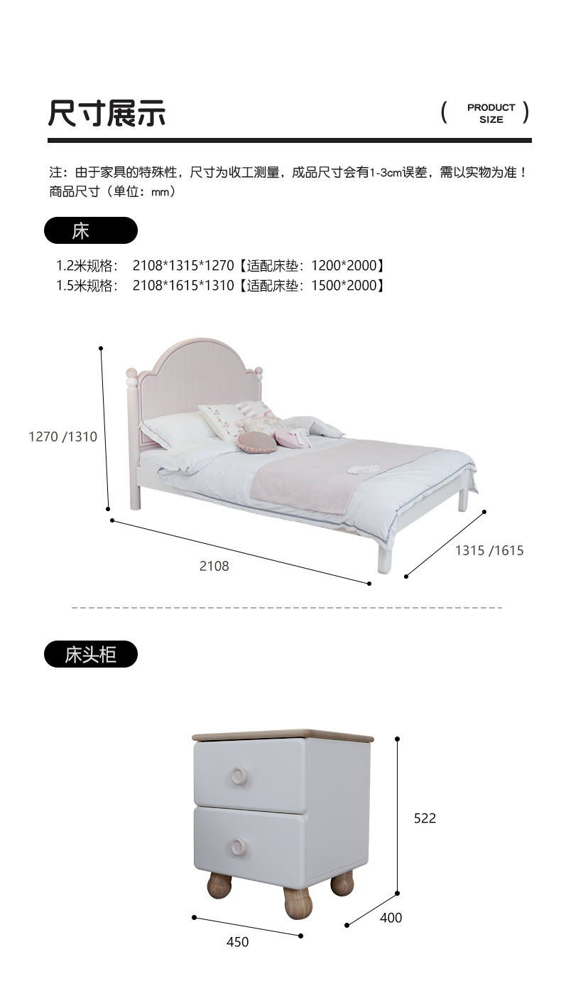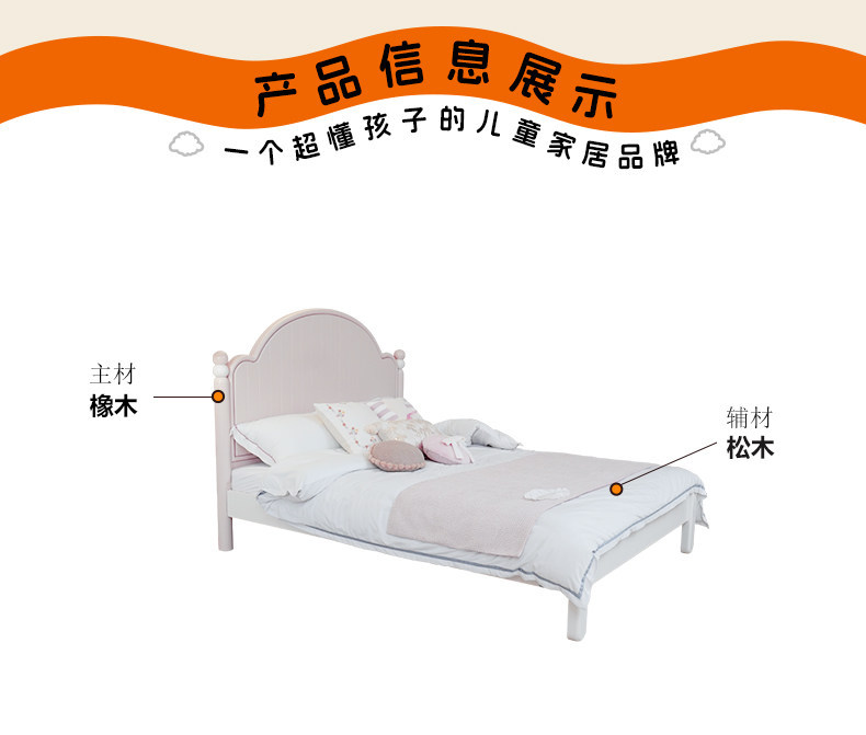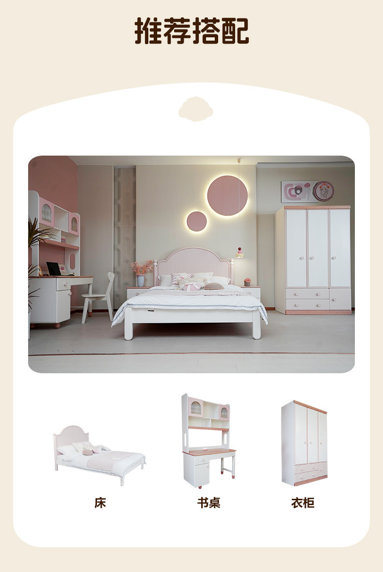 무웨 어린이 침대 여아용 원목 핑크 공주 침대 모던 소형 가정용 침실 싱글 침대 1.5m