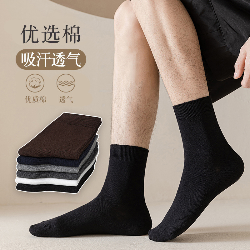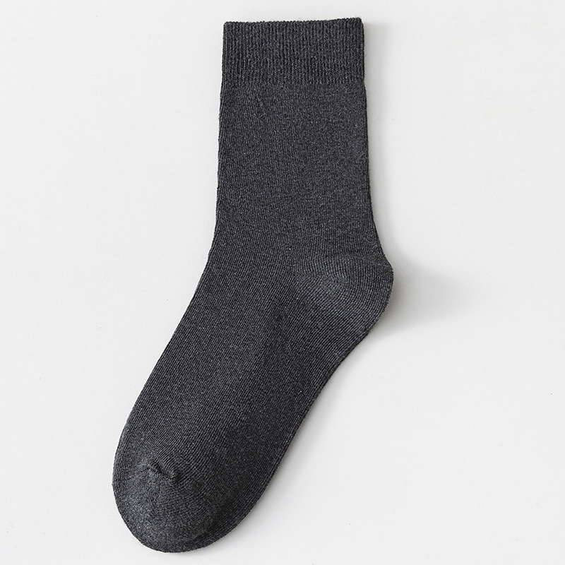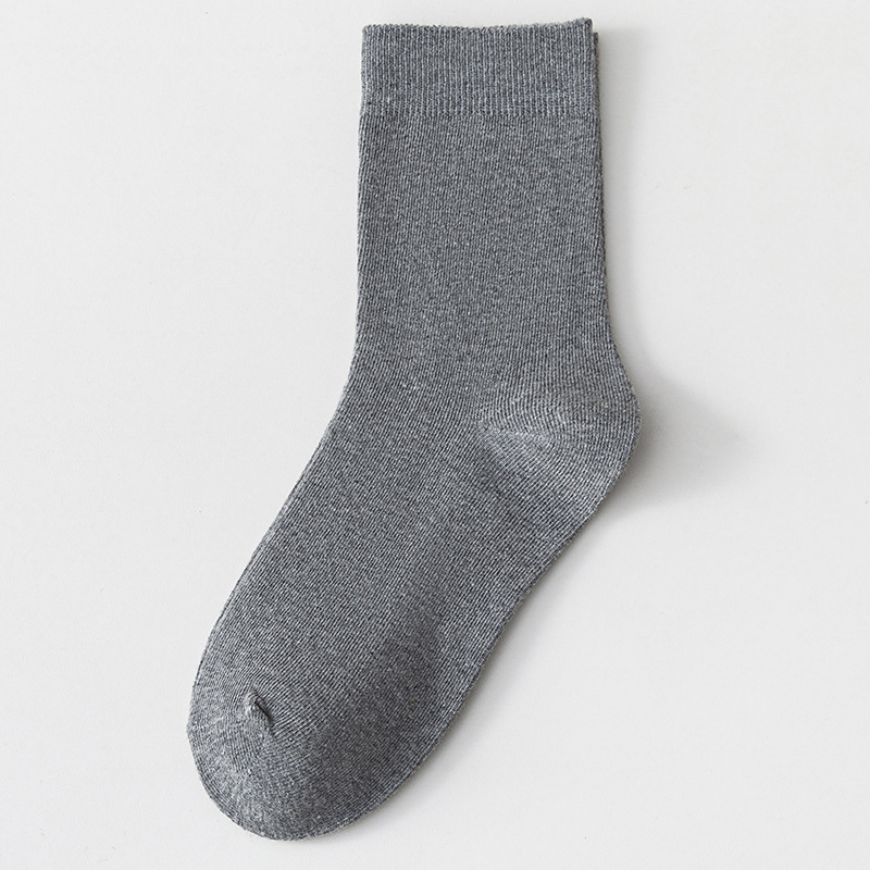双针纯色男中筒商务袜