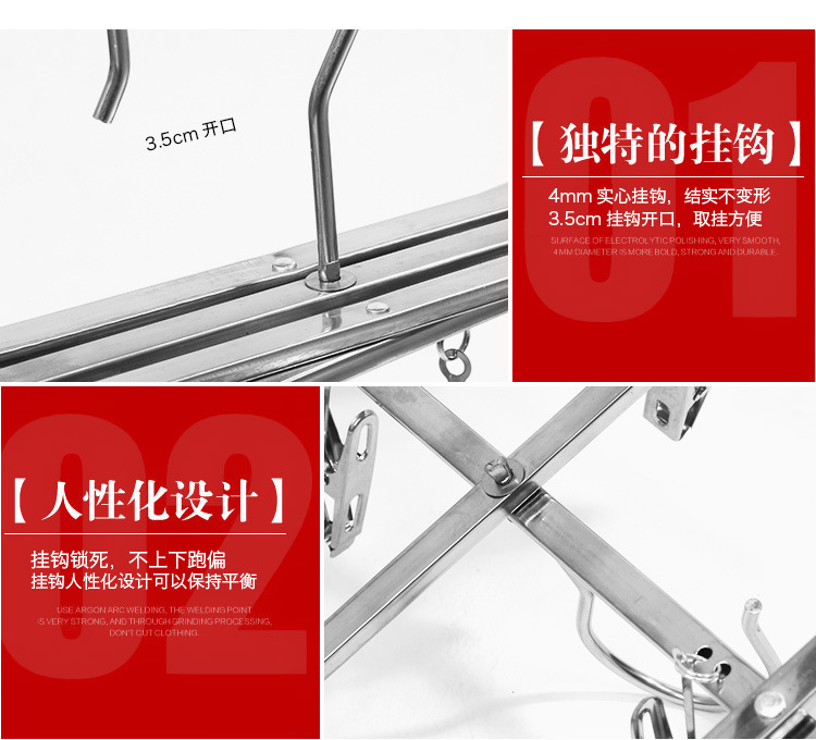 其实,家用不锈钢产品,有一个保养秘诀:及时清洁。因为现在都市空气中飘浮不少腐蚀性的分子会附着在衣架上面。很简单!及时清洁:擦一擦,就会永远光亮如新。