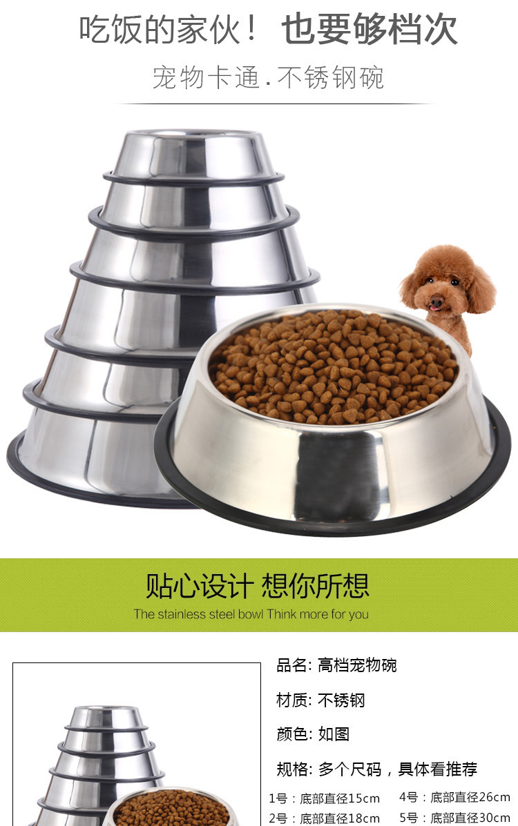 제조업체 직접 공급 스테인레스 스틸 개 그릇 미끄럼 방지 애완 동물 먹이 그릇 6 크기 개 그릇 고양이 그릇 도매 드롭 배송
