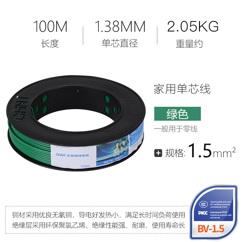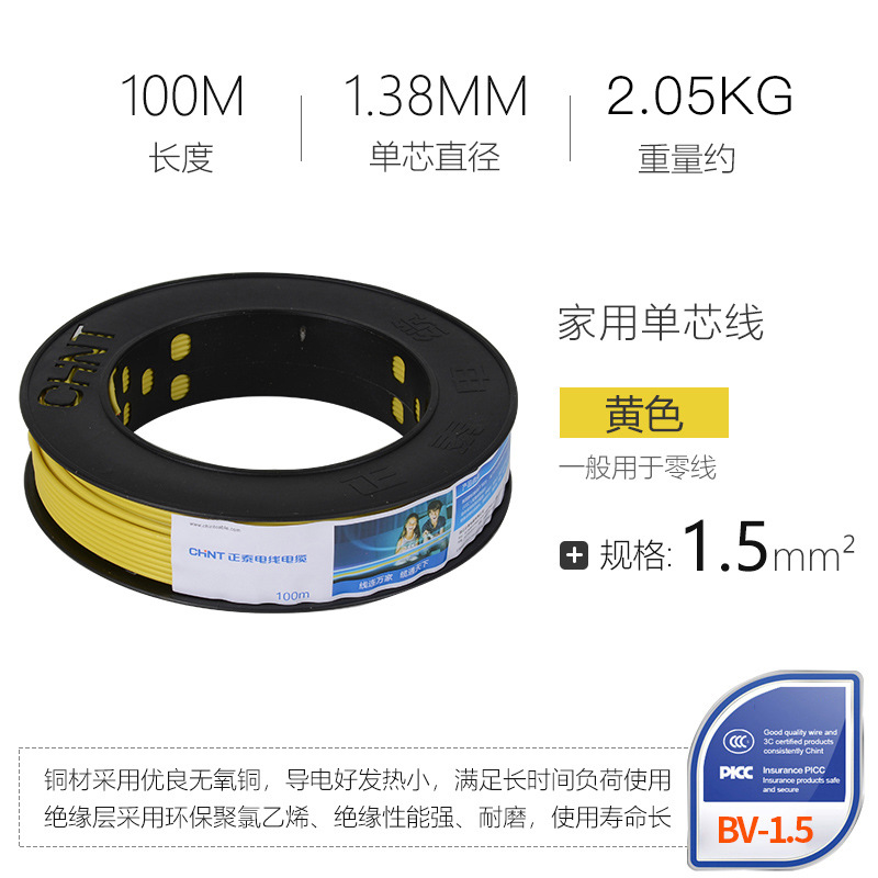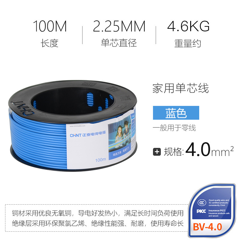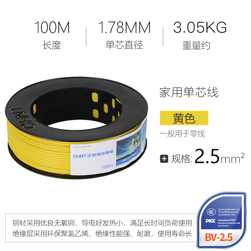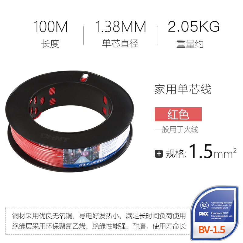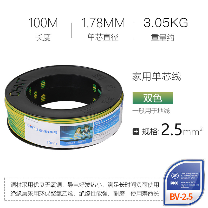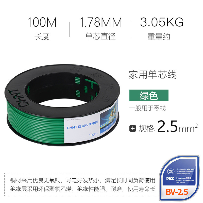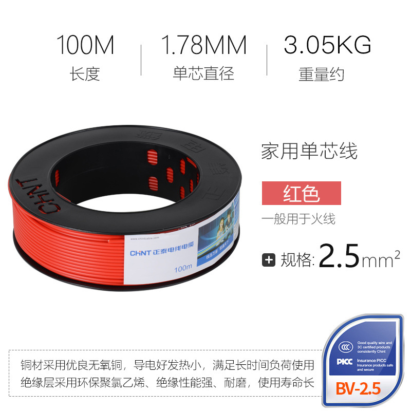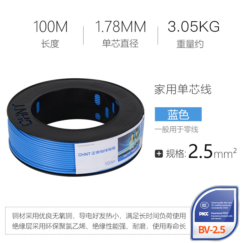 Chint 와이어 및 케이블 단일 코어 BV 2.5 하드 와이어 구리 와이어 홈 장식 가정용 배선 구리 와이어 실내 스레딩 파이프 제조 업체스토어 가기