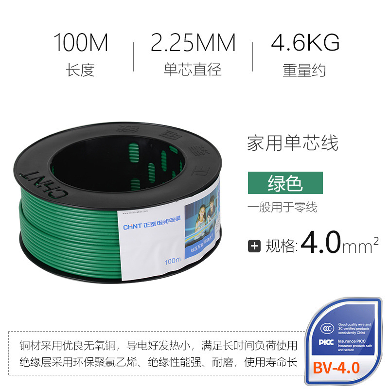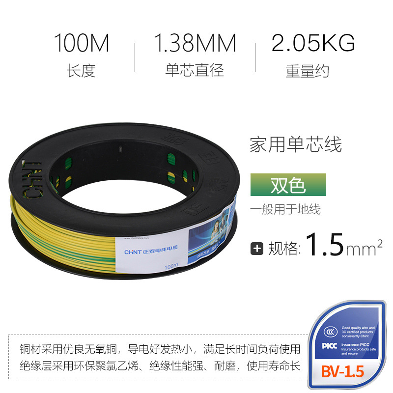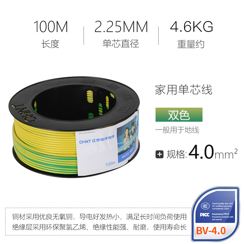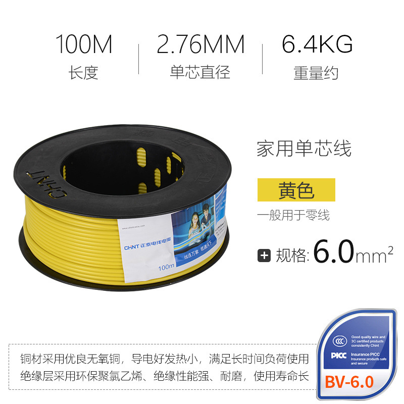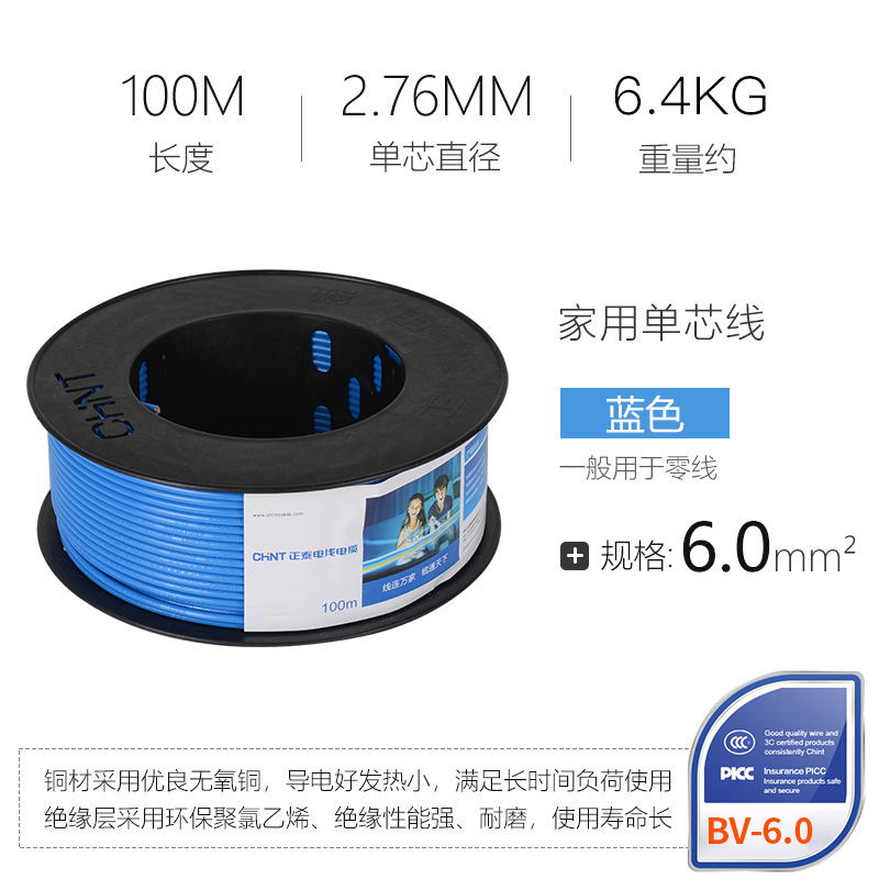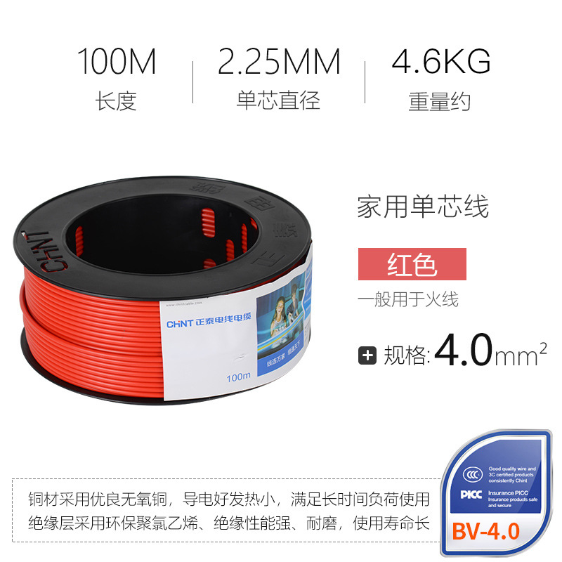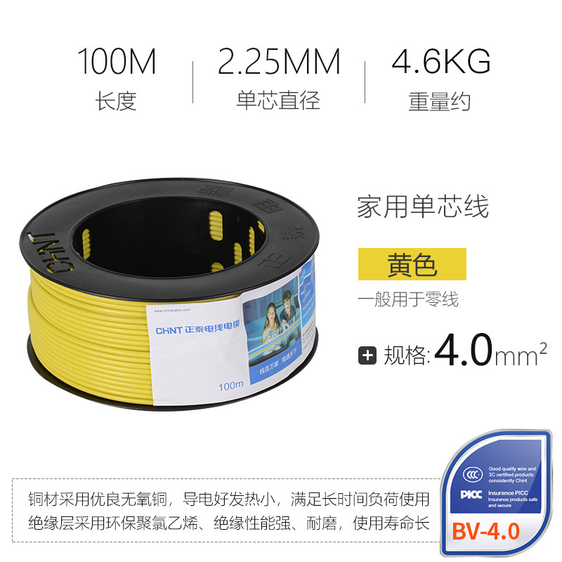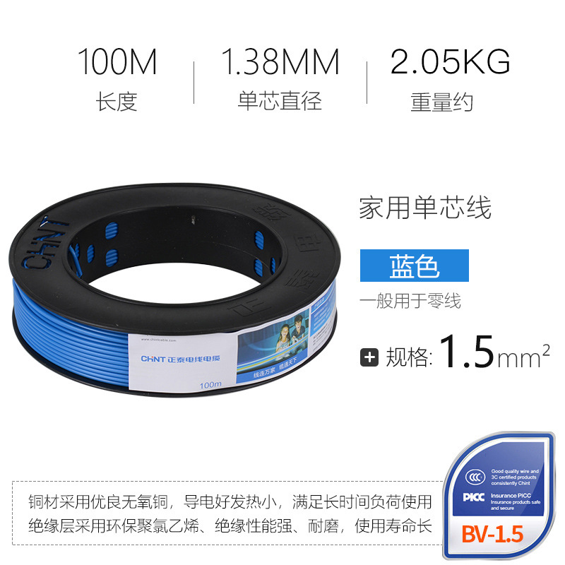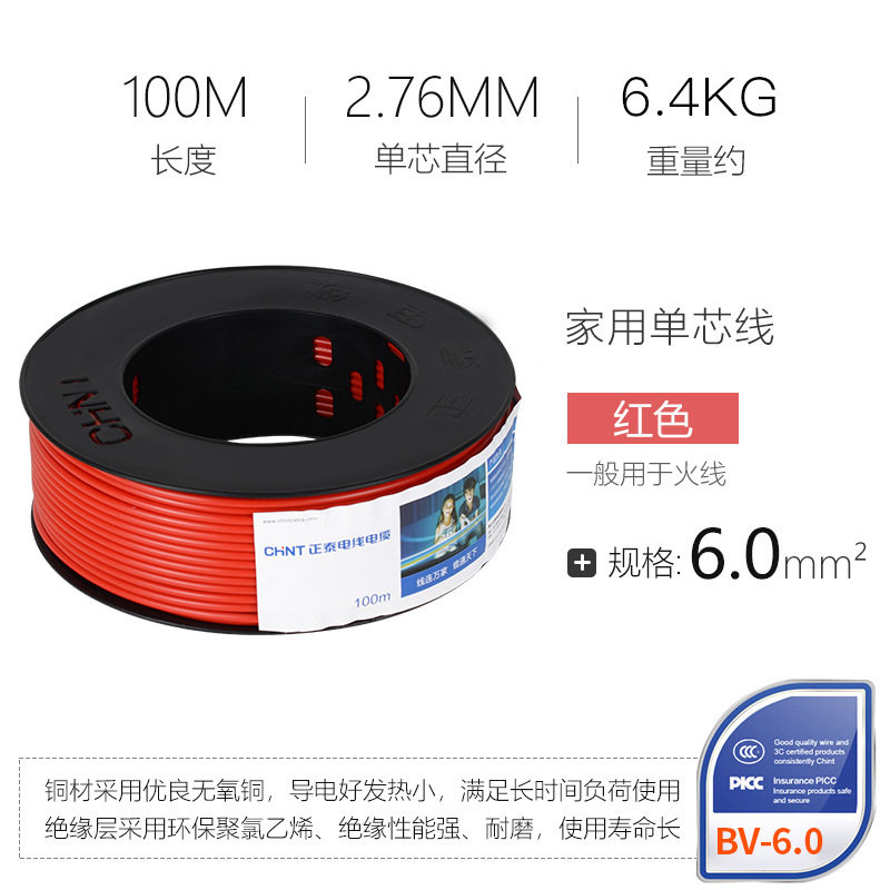 Chint 와이어 및 케이블 단일 코어 BV 2.5 하드 와이어 구리 와이어 홈 장식 가정용 배선 구리 와이어 실내 스레딩 파이프 제조 업체스토어 가기