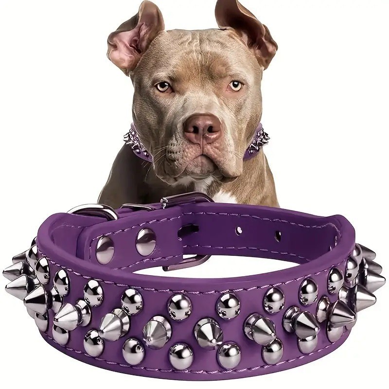 亚马逊热销狗项圈防咬铆钉宠物项圈中大型猛犬狗链法国斗牛犬项圈
