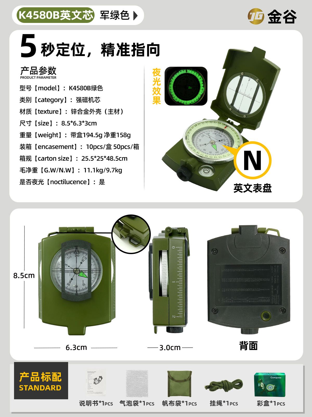 소스 제조업체 미국 야외 다기능 나침반 북쪽 나침반 고정밀 전문 캠핑 발광 나침반 북쪽