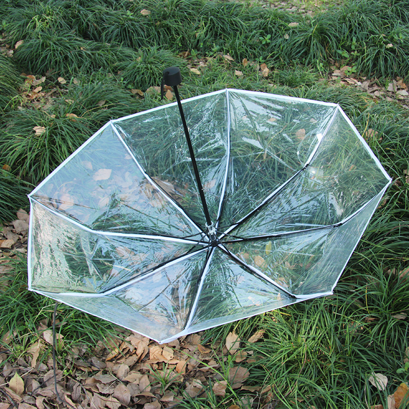 우산 투명 3 배 우산 완전 자동 3 배 우산 맑은 우산 개인화 된 패션 접는 우산 투명 완전 자동 우산