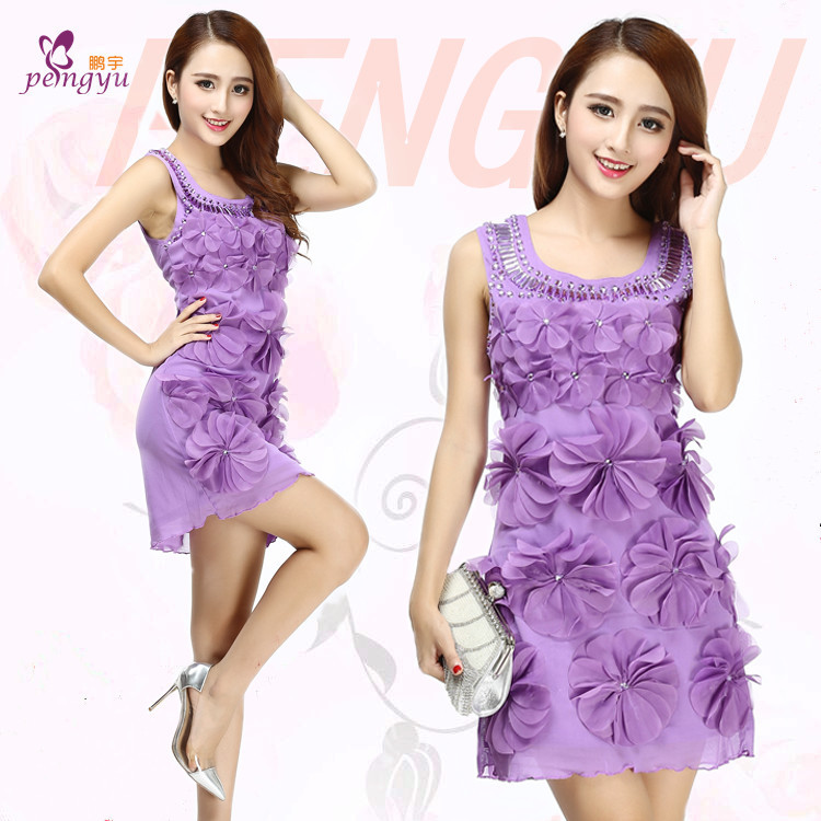 名称:新款韩版手工钉珠雪纺立体花瓣无袖背心连衣裙