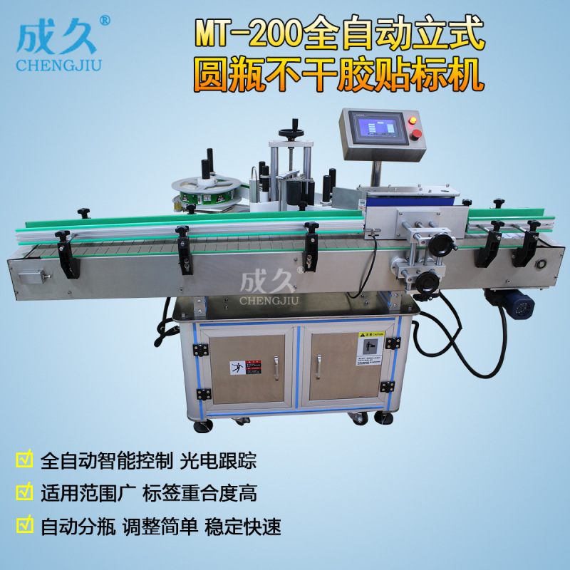 • MT-200 자동적인 수직 둥근 병 라벨링 기계 (컨베이어 벨트 길이 2 m)
