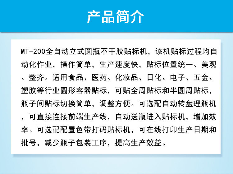 • MT-200 자동 수직 둥근 병 라벨링 기계 (컨베이어 벨트 길이 1.6 m)