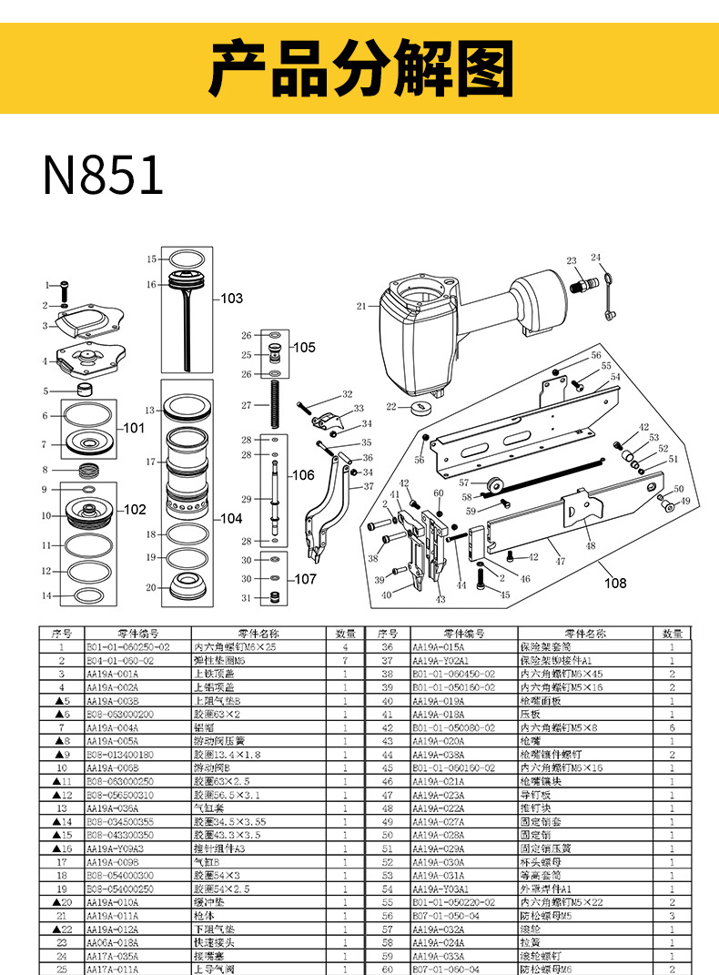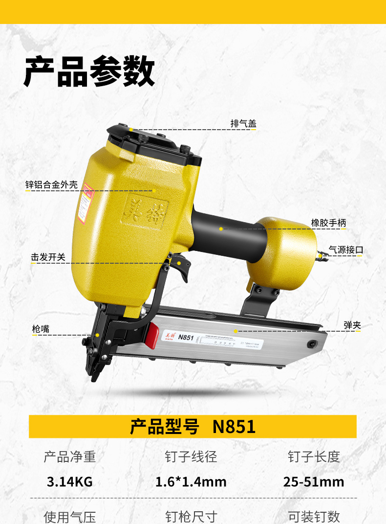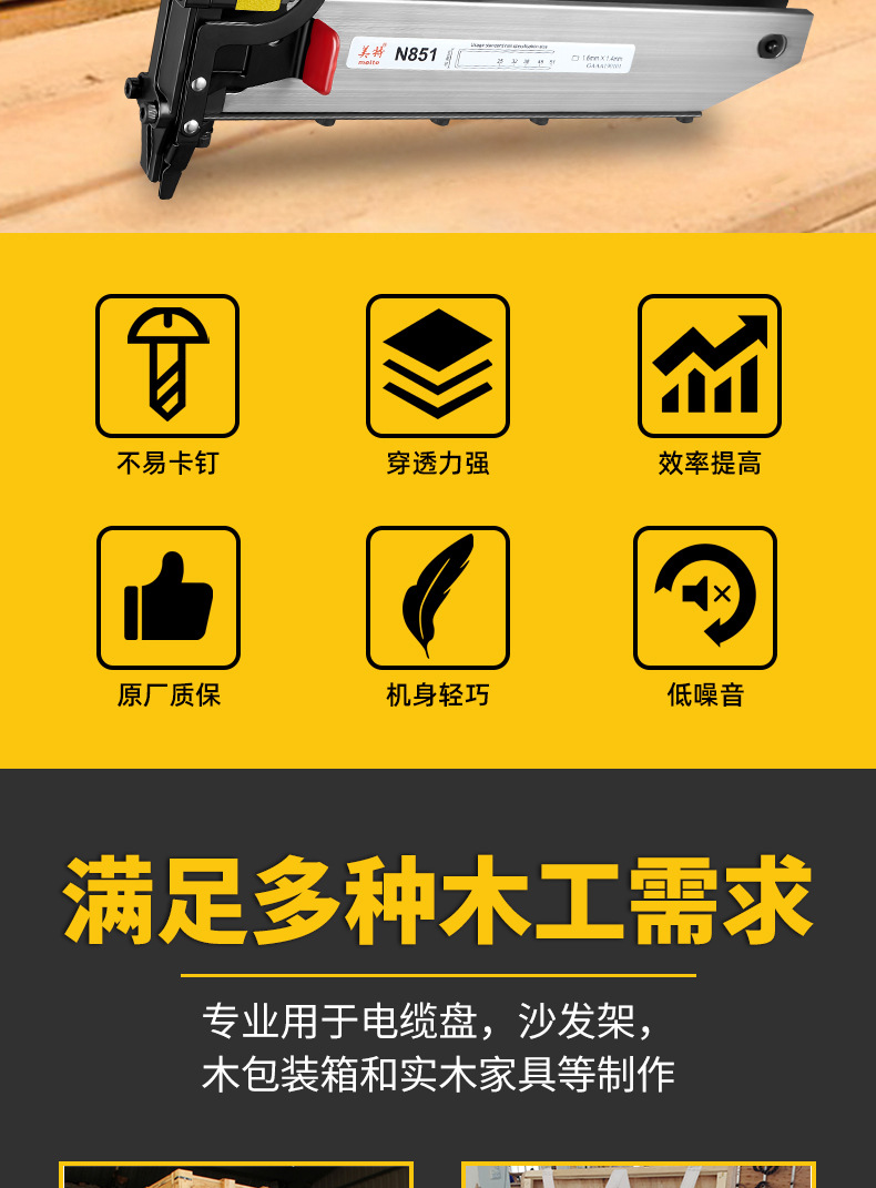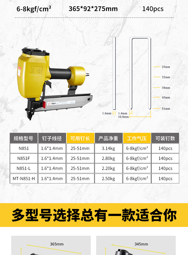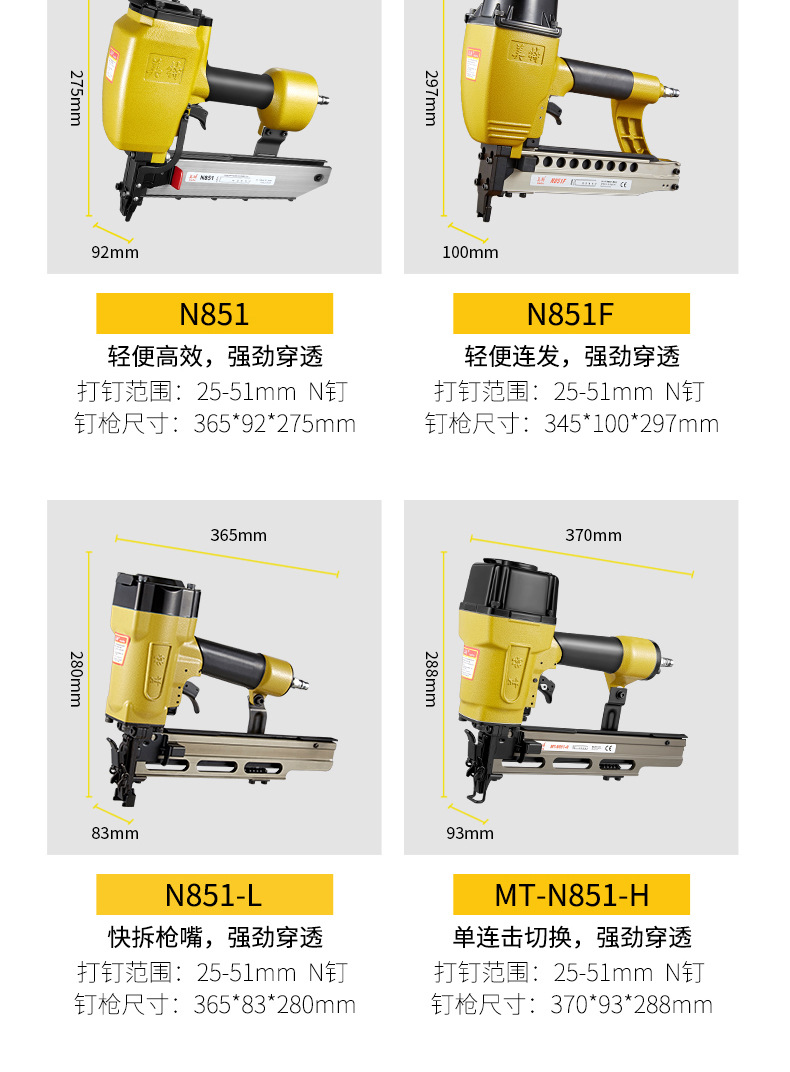 메이테 공압식 못총 N851 대형 못총 목공용 넓은 못총 단발 연속발 못총 강철 못총