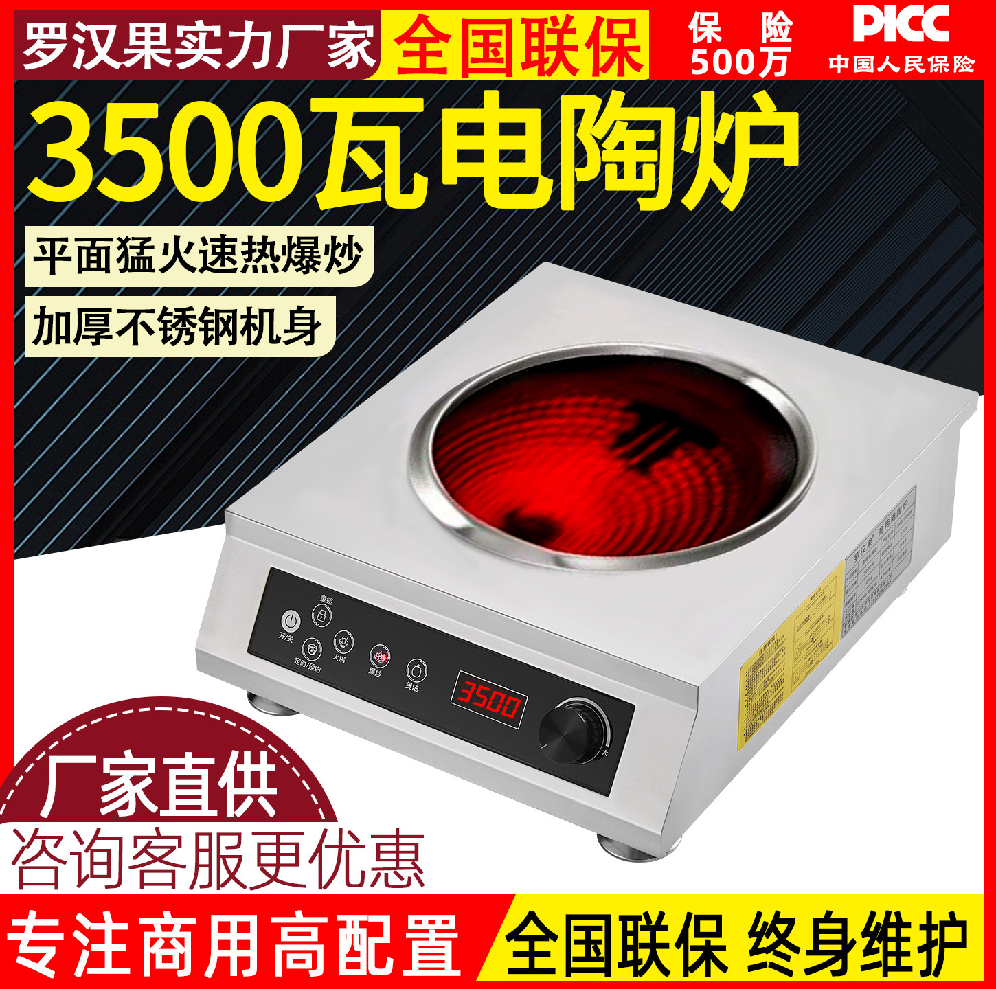 스테인리스 상업용 인덕션 쿠커, 전기 세라믹 쿠커 3500W, 평면 오목형, 볶음, 전골, 수프 조리용, 식당, 구내식당용스토어 가기
