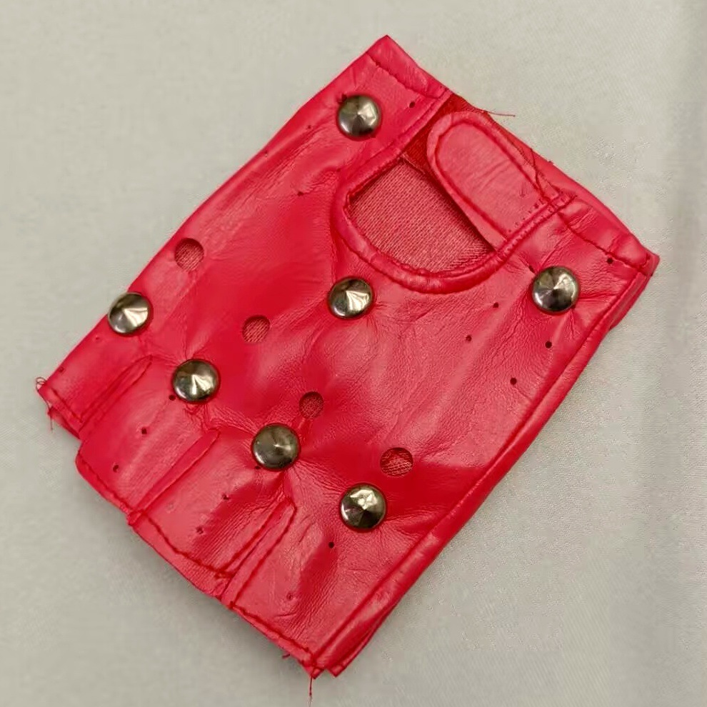 남성과 여성을위한 빨간 가죽 반 손가락 장갑 공연 댄스 공연 가수 야외 사이클링 멋진 장갑 리벳 장갑