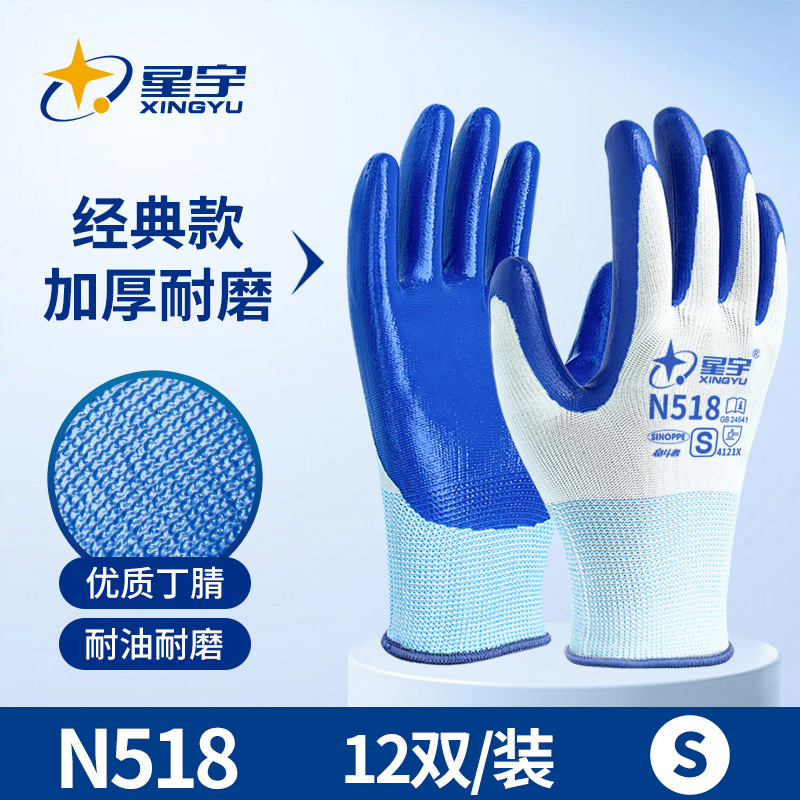 신규 노동 보호 N528 니트릴 딩 청 장갑 내마모성 미끄럼 방지 장갑 작업 도매 내유성 건물 국자 장갑스토어 가기