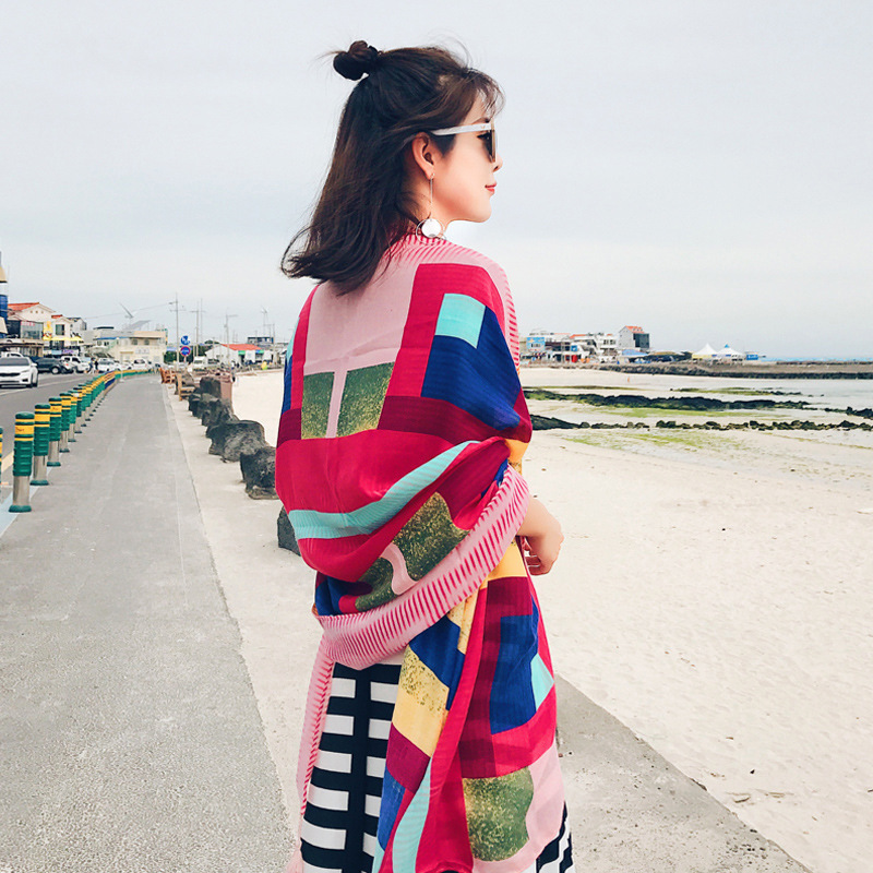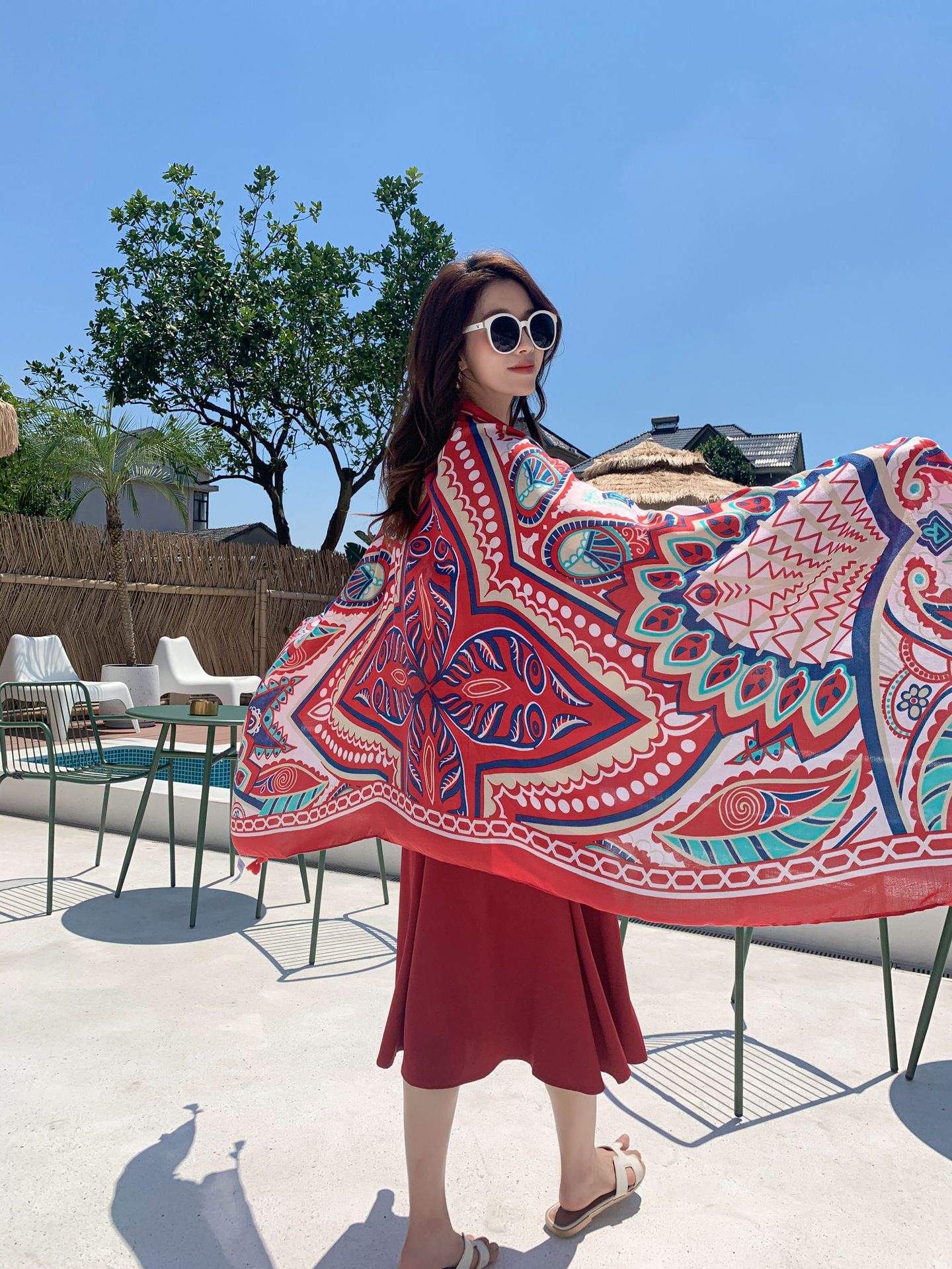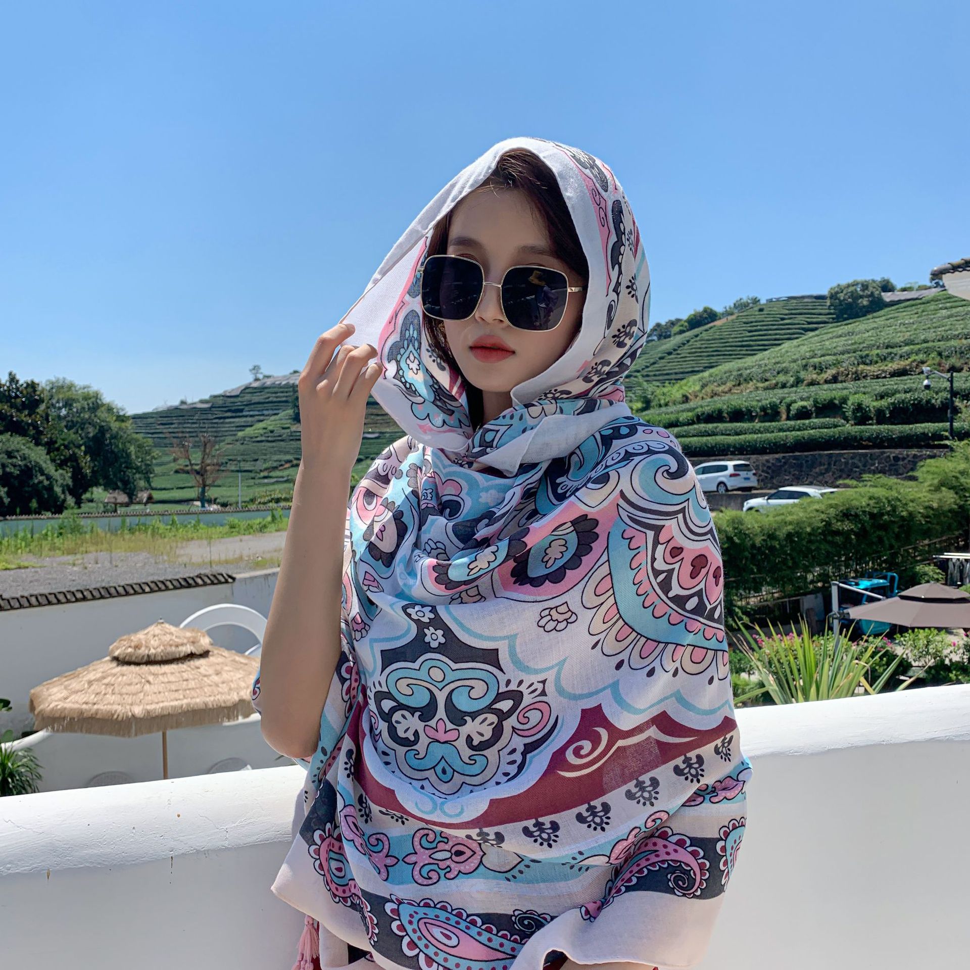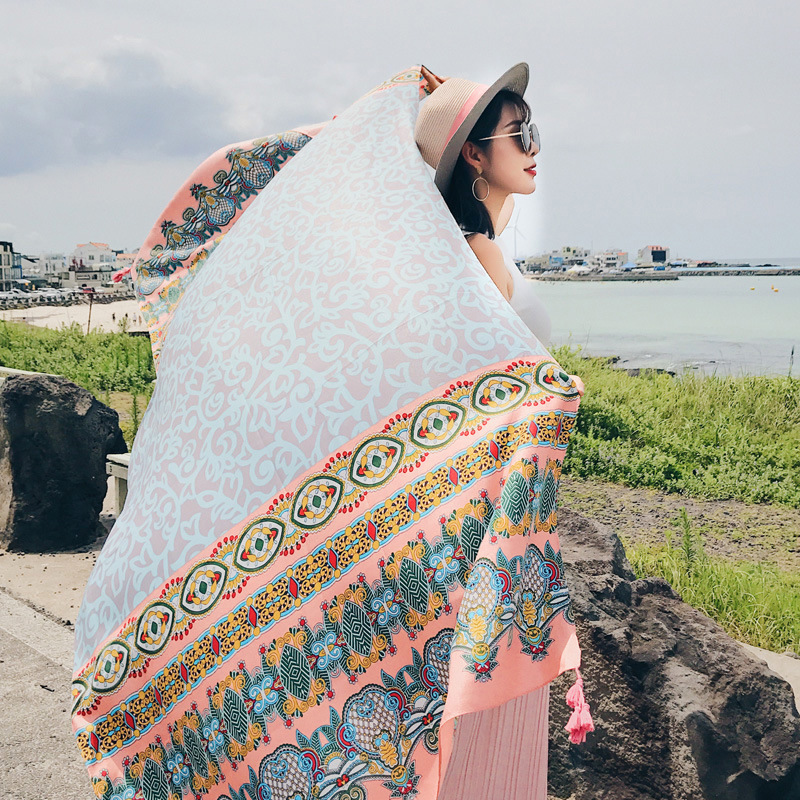 보헤미안 스타일 비치 비치 타월 선스크린 목도리 여성용 스카프 이중 사용 민족 스타일 관광 실크 스카프