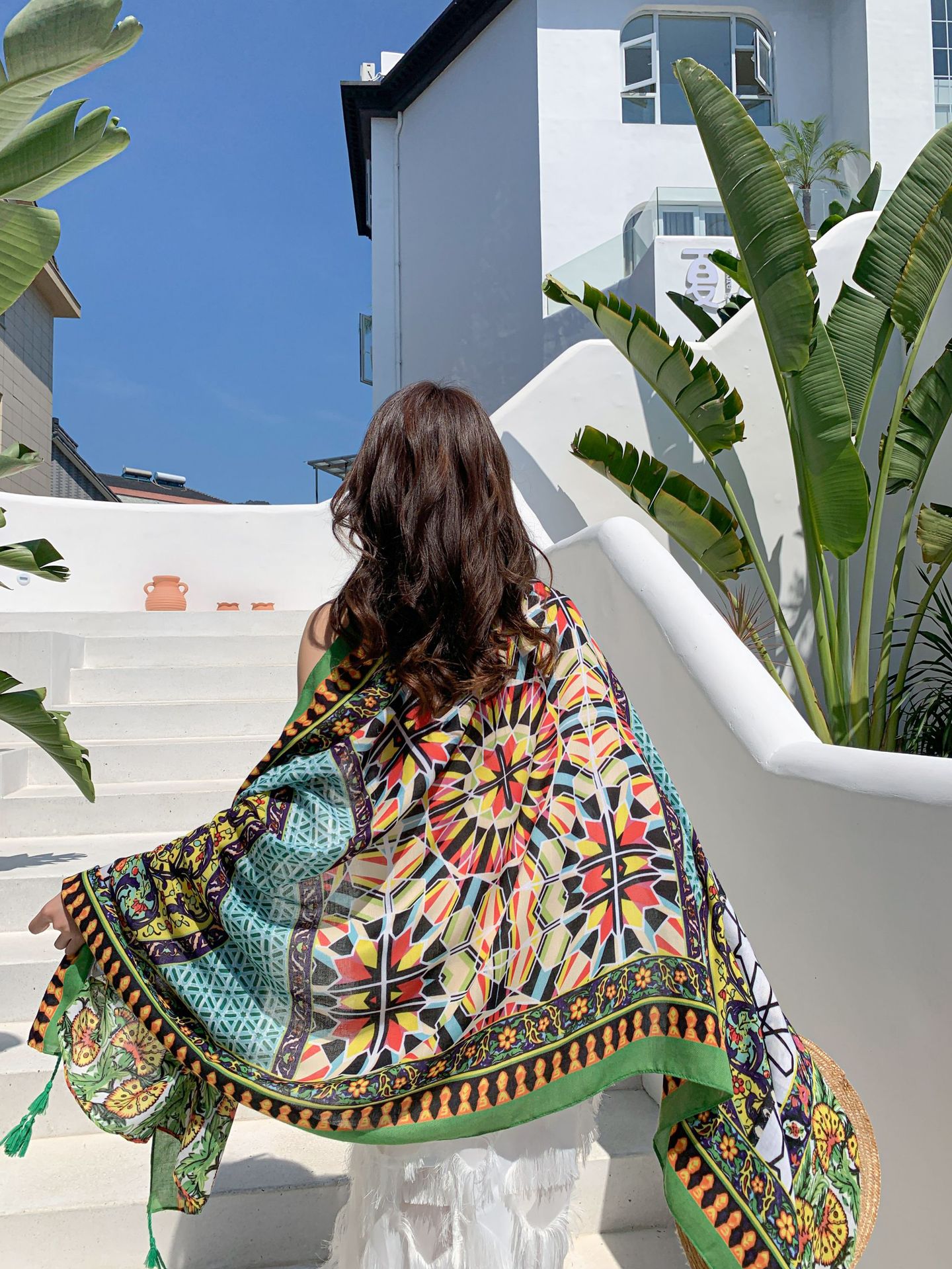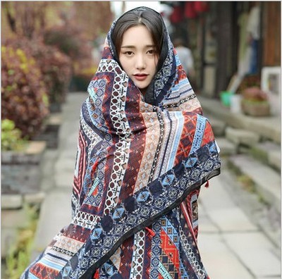 보헤미안 스타일 비치 비치 타월 선스크린 목도리 여성용 스카프 이중 사용 민족 스타일 관광 실크 스카프스토어 가기