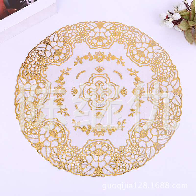 此款餐垫以优质PVC为主要材料,烫金镂空精美印花。简洁大方、素净高雅,亦可放在花瓶、烟灰缸下做衬托,也可以作为桌旗哦~实用性和装饰性极强