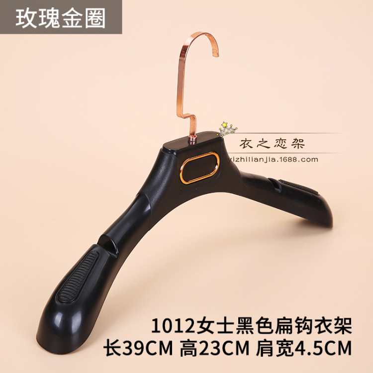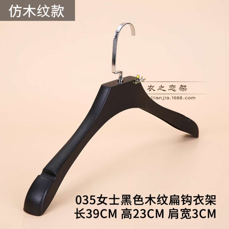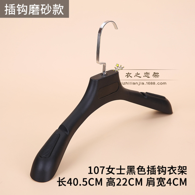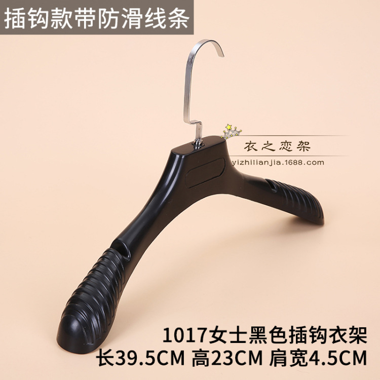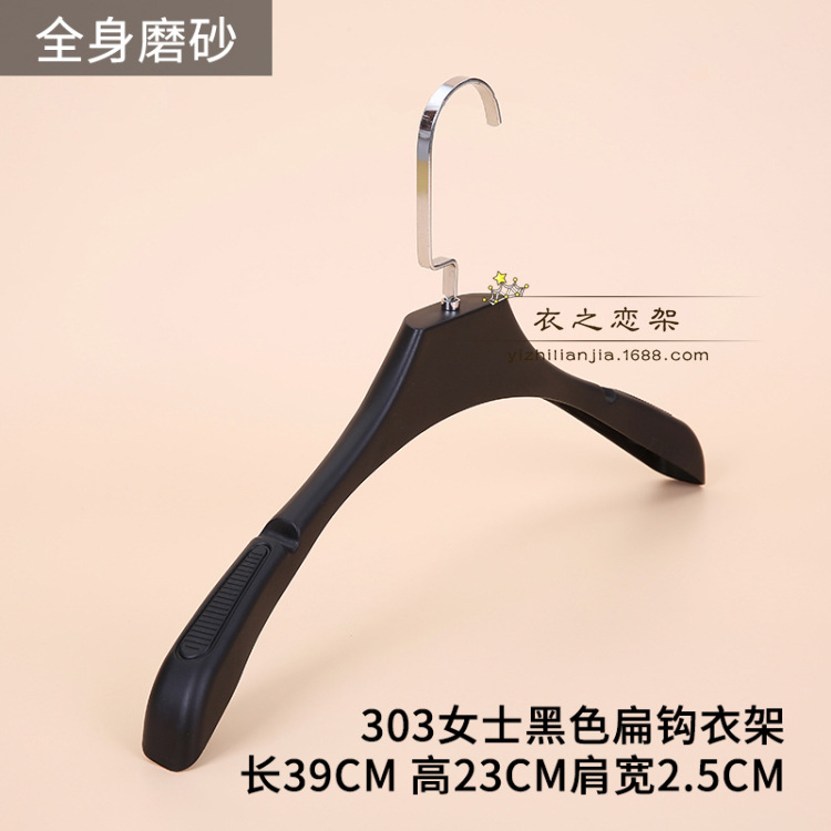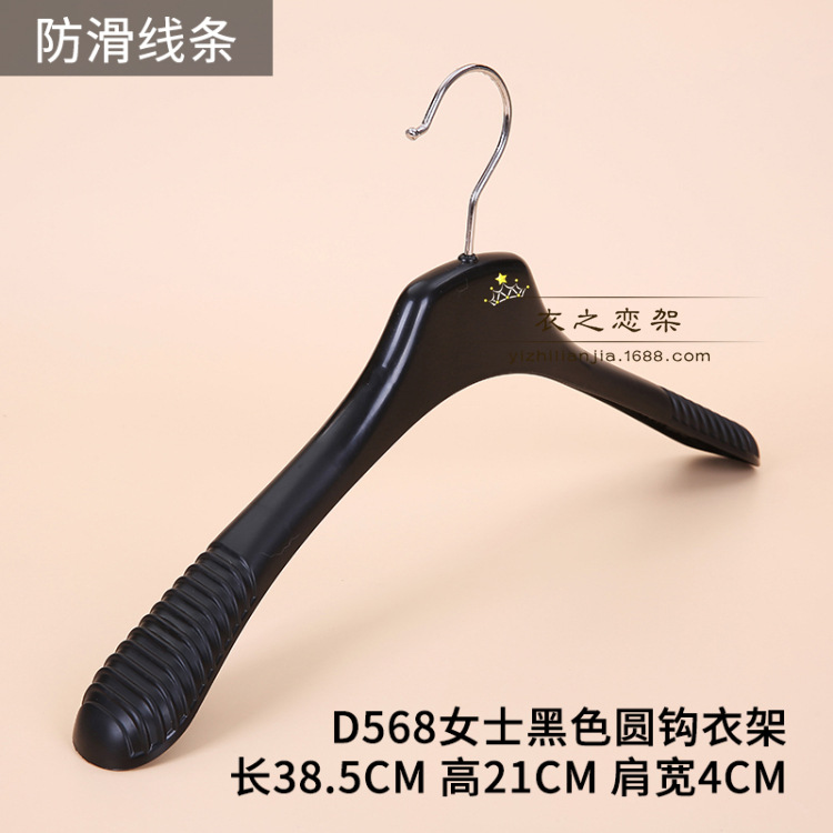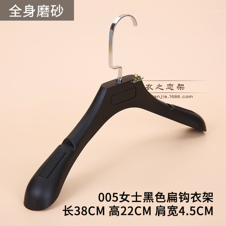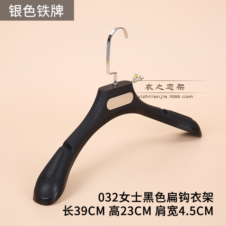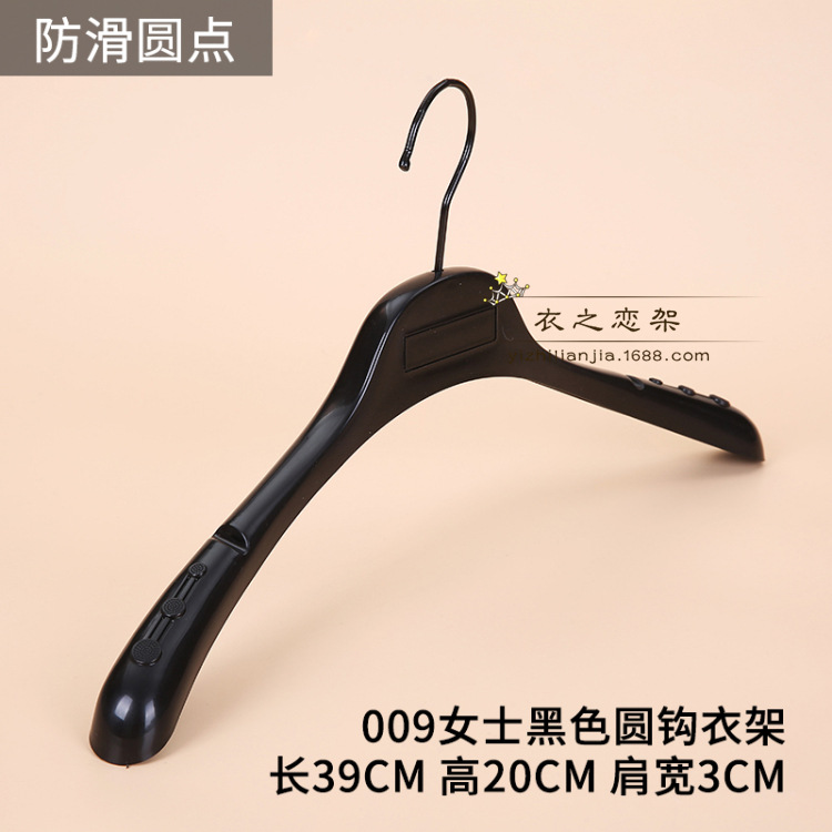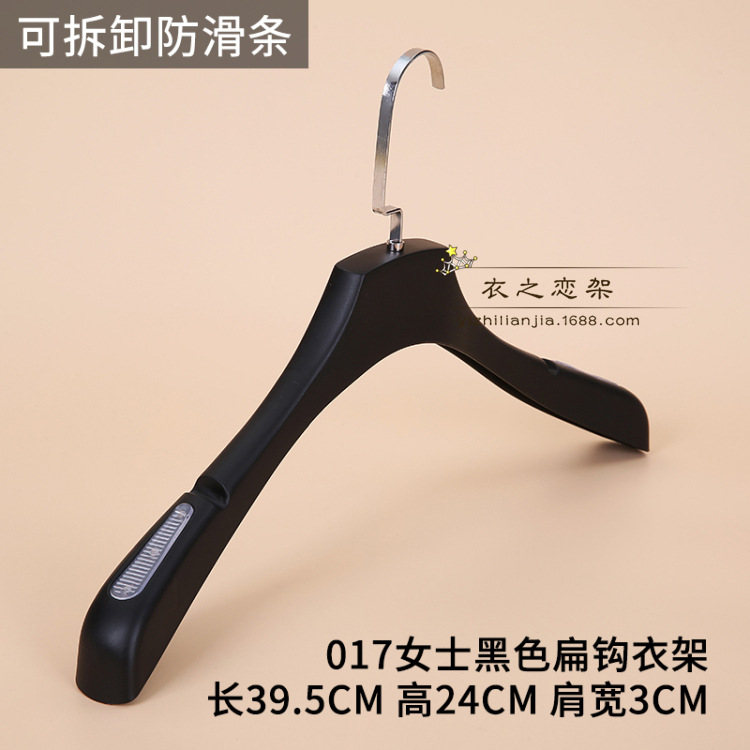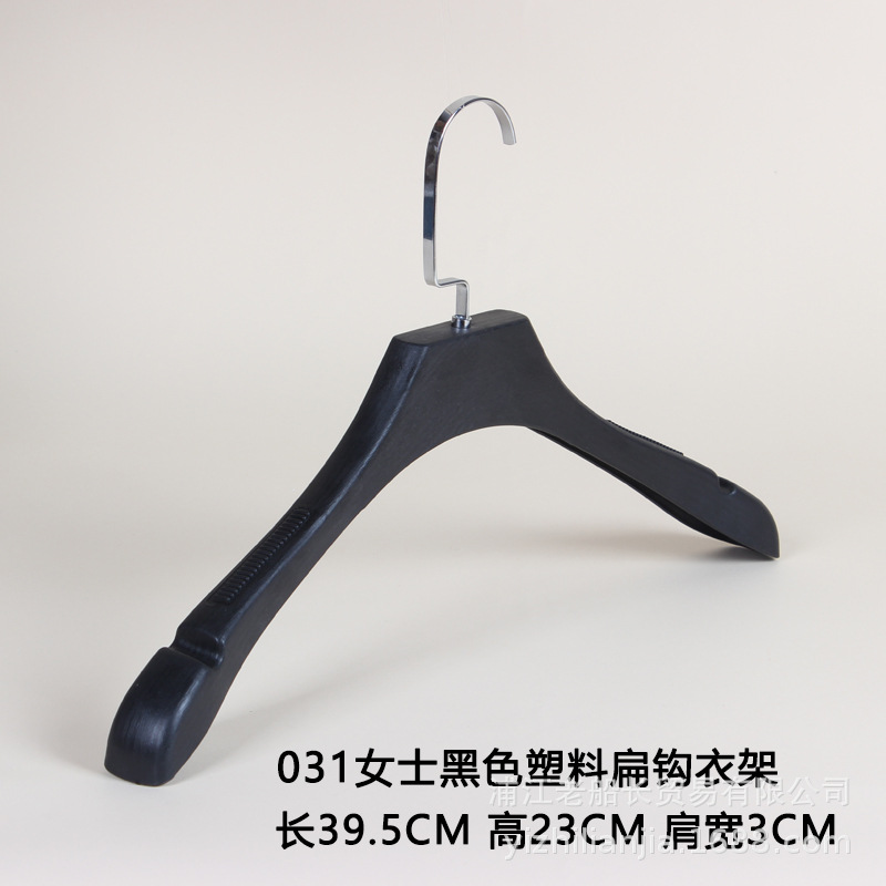 • 031 여성용 검정색 미끄럼 방지 플라스틱 플랫 후크 옷걸이.