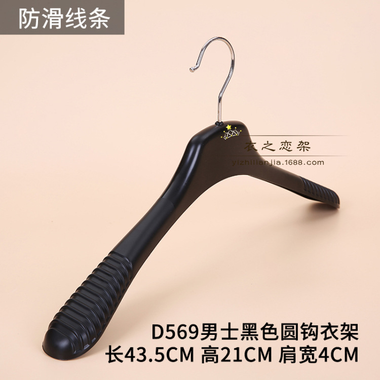 • 041 남성용 검정색 미끄럼 방지 플라스틱 플랫 후크 옷걸이