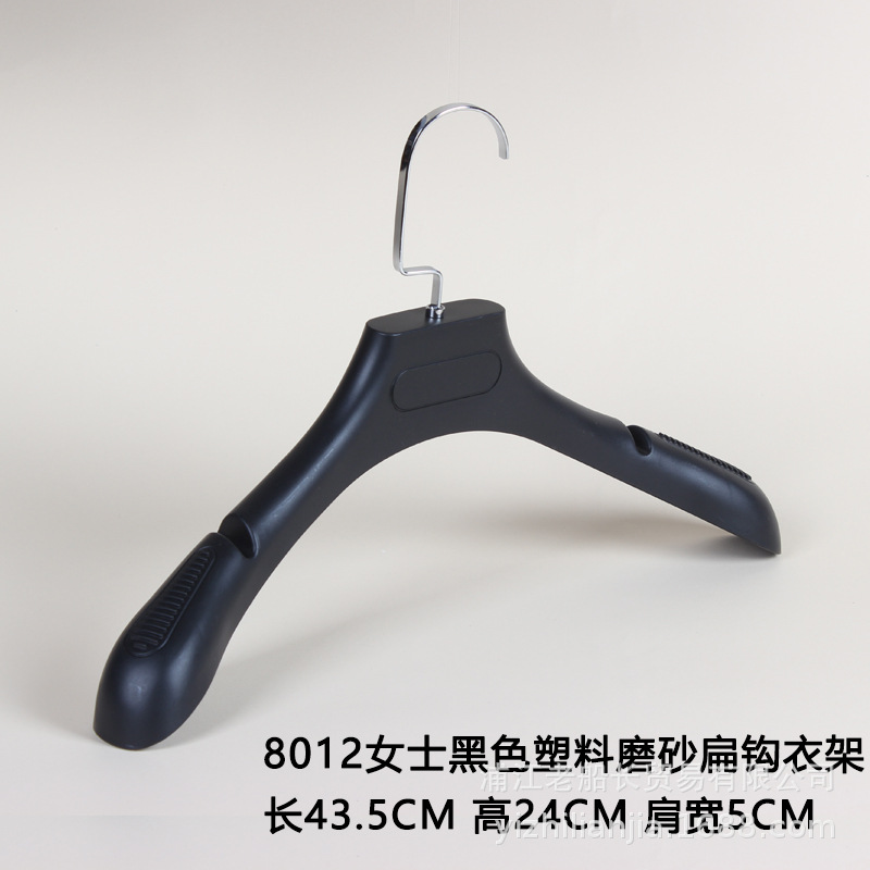• 8012 여성용 검정색 플라스틱 플랫 후크 옷걸이